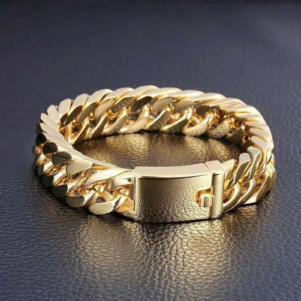 браслет браслеты на руку браслет мужской цепочка мужская подарок мужчине браслеты на руку женкие браслет мужской Жесткие браслеты Браслет-цепочка Мужской позолоченный из нержавеющей стали в стиле хип-хоп