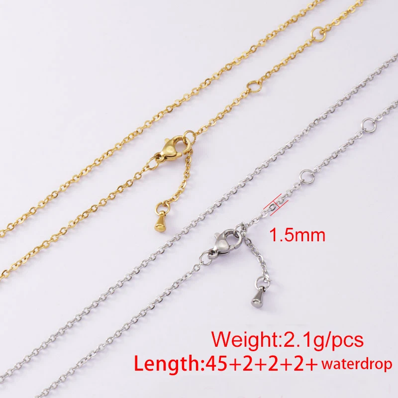 Fnixtar, 20 шт., 45 + 2 + 2 + 2 см, цепочка из нержавеющей стали 304 с зеркальной полировкой, ожерелья с удлинителем Wterdrop для изготовления ожерелий своими руками
