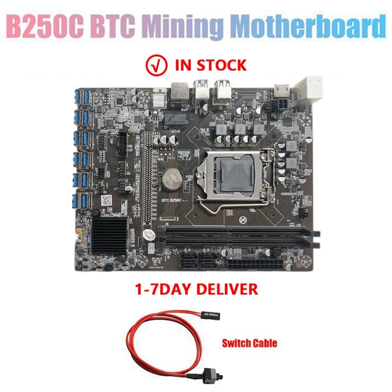 Материнская плата b250c для майнинга btc + кабель коммутатора 12xpcie на USB3.0 слот GPU LGA1151 поддержка DDR4 DIMM RAM компьютерная материнская плата
