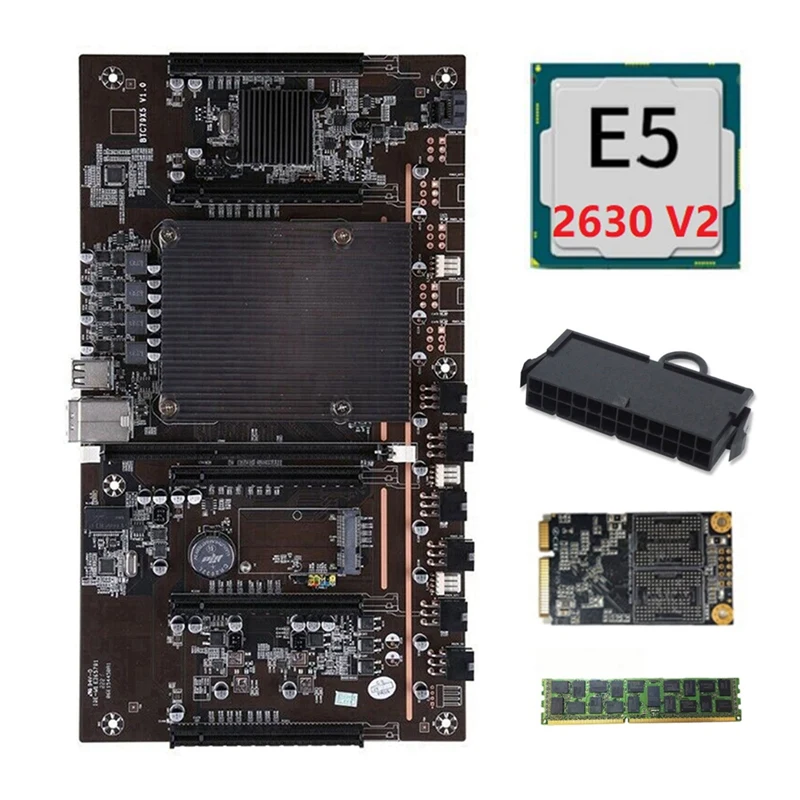 Семейная материнская плата для майнинга BTC X79 с ЦП E5 2630 V2 + RECC 4G DDR3 ОЗУ + 24-контактный разъем + 120G SSD Поддержка 3060 3070 GPU