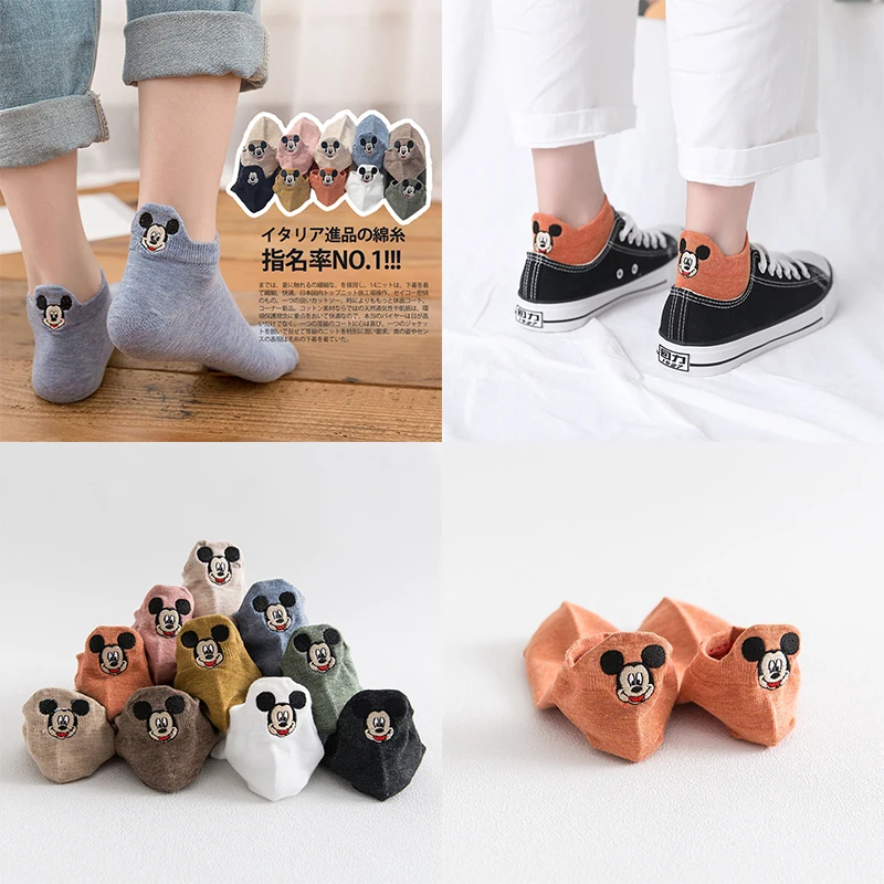 Милые носки Disney, носки счастливого цвета с Микки и Минни, осенни...