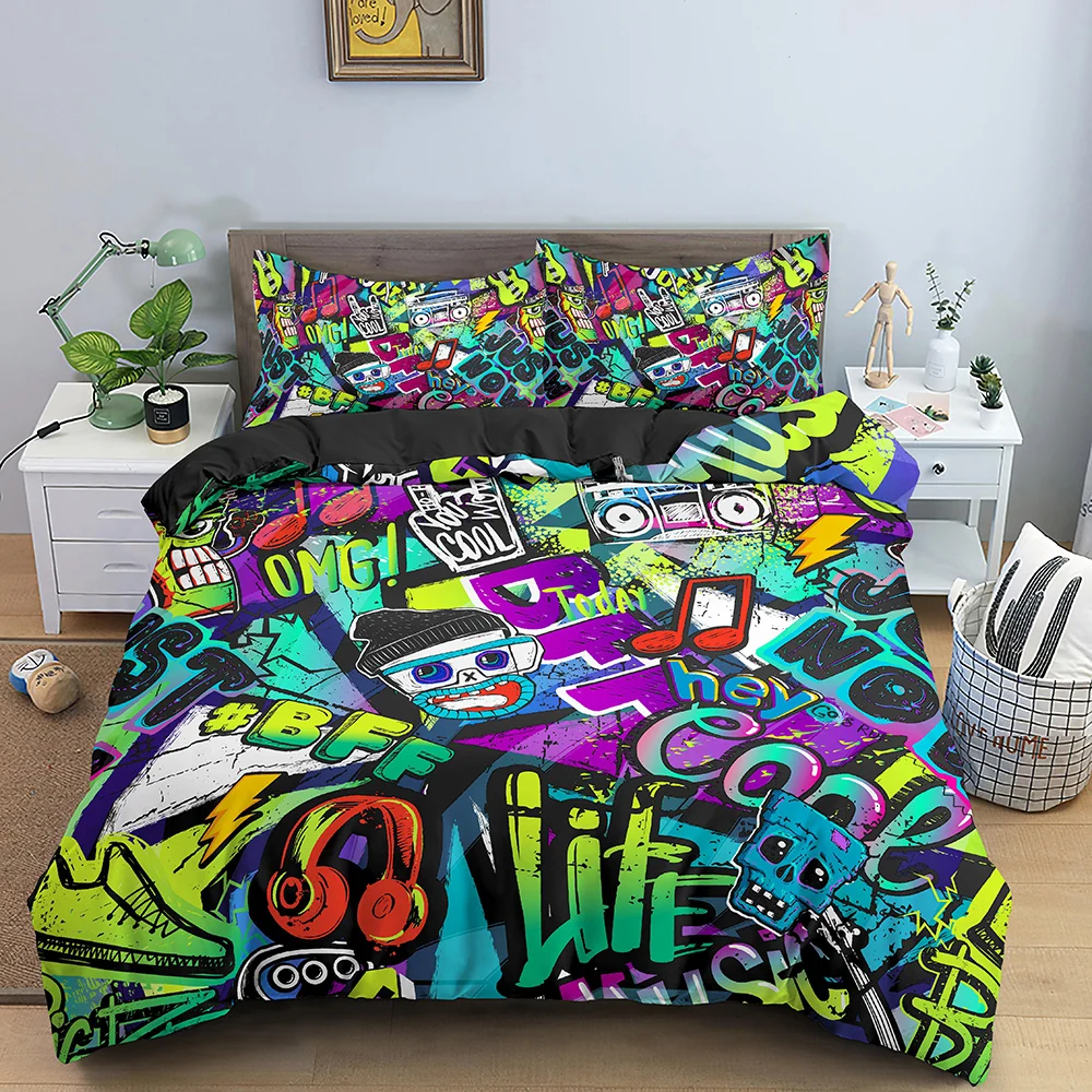 Комплект постельного белья для детей, с рисунком граффити, пододеяльник, простыня, односпальный, двуспальный, Королевский размер, пододеяльник, 240x220