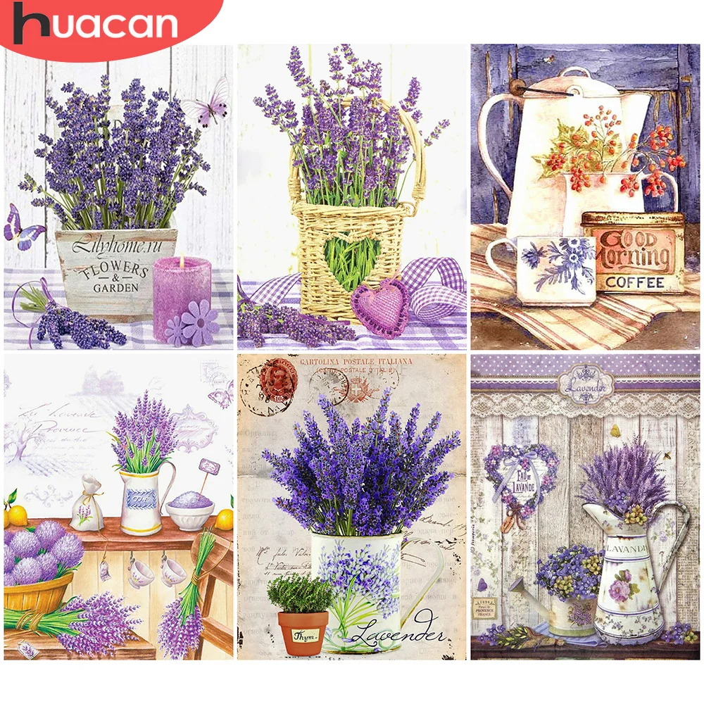 HUACAN Алмазная картина полная дрель квадратная Лавандовая Алмазная вышивка крестиком Цветочная мозаика для кухни рукоделие домашний декор