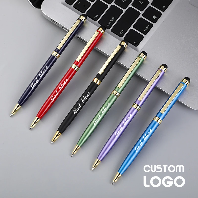 Бесплатный логотип на заказ, высококлассная цветная шариковая ручка с сенсорным экраном, бизнес-реклама, школьная ручка, ручка для резьбы, подарочная ручка