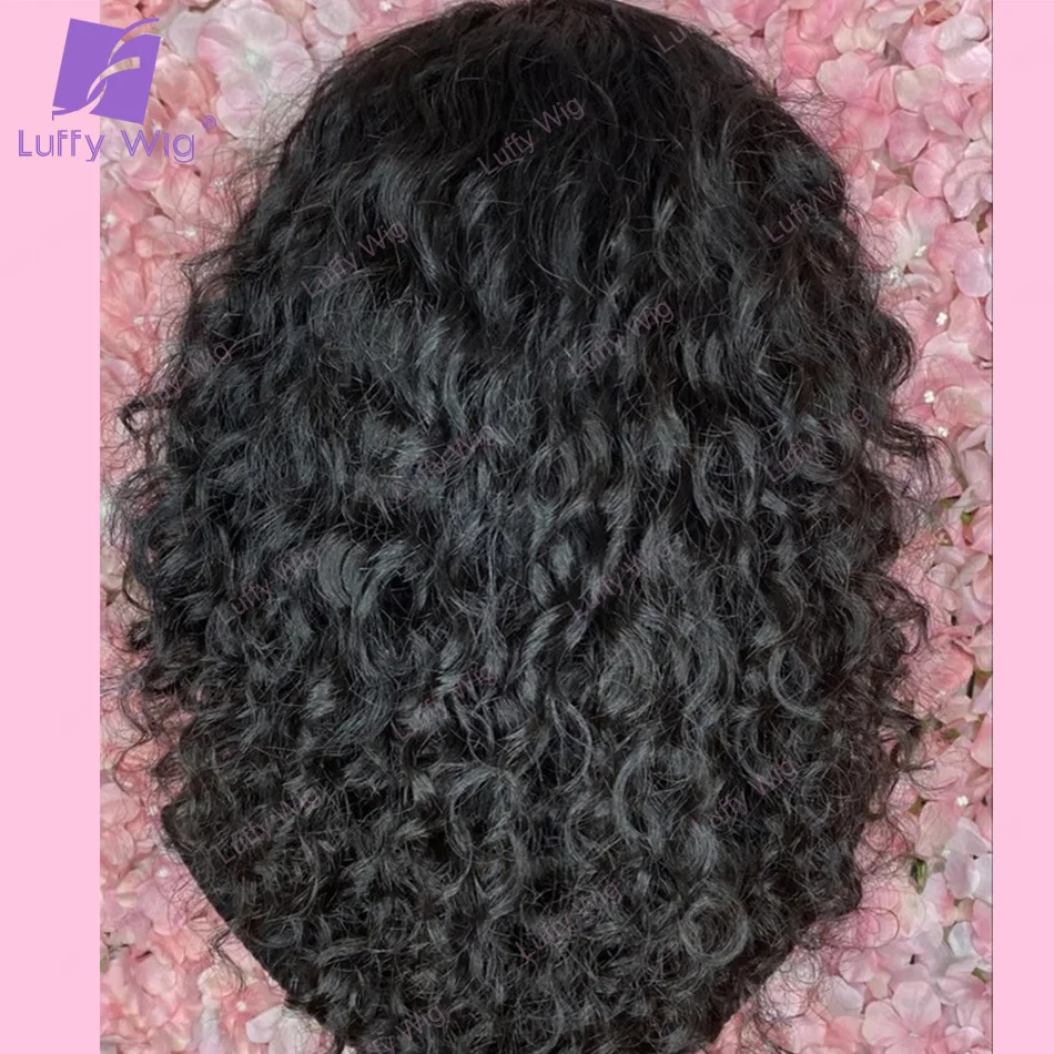 Короткие вьющиеся человеческие волосы, Боб, парики с челкой, бразильские волосы Remy, машинная работа, парик O Top, без клея, 200 плотность для черных женщин LUFFY