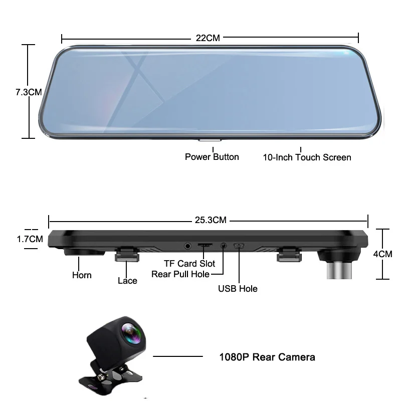 10 дюймовый Ультра широкоугольный full view сенсорный экран, номерных знаков, дорожных знаках, а также другие важные детали в дороге. Очень четкий и плавный показ изображения, как поток, протекающий на превосходном WDR и автоматическом регулировании яркости потокового зеркала.