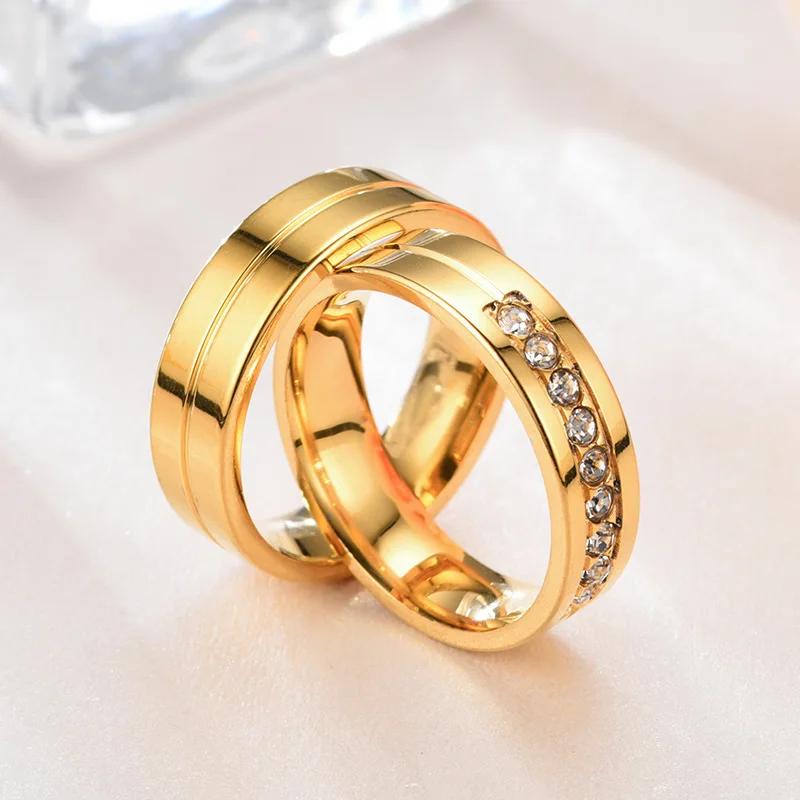 Набор мужских и женских колец, из нержавеющей стали, стразы и циркония