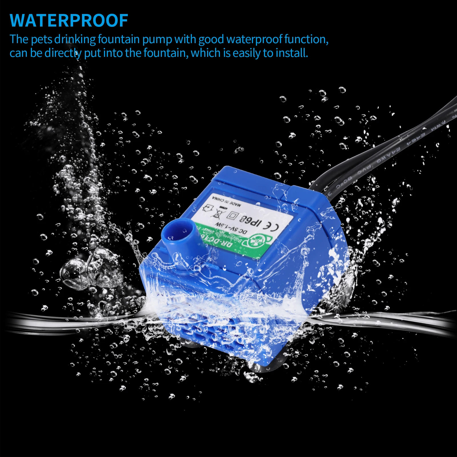 Особенности:КомпактныйНасос для питья домашних животных компактный, который не будет занимать много места для установки в фонтане.Длинный кабельДомашние животные для фонтанчика питьевой воды насос дизайн с 1,5 м/58,95 дюймов длинный кабель питания, который имеет мало ограничений для вашего оформления.ВодонепроницаемыйНасос для питья домашних животных с хорошей водонепроницаемой конструкцией, может быть непосредственно помещен в фонтан, который легко устанавливается.ПрактичныйПитательный фонтанный насос для домашних животных может обеспечить питание питательного фонтанного насоса для домашних животных, и он может остановить питание, после чего вода будет выключена.Область примененияНасос для питья домашних животных является идеальной заменой для вашего старого насоса в фонтане питья домашних животных.Спецификация:Тип: питательный фонтанный насос для домашних животныхМатериал: пластик + электронный компонентЦвет: синийНапряжение: 12 ВРазмер: 10*7 см/3,93*2,75 дюйма (Д * Ш)Вес нетто: 80 г/2,82 унцийУпаковочный лист