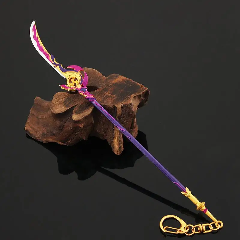 Брелок для ключей Genshin Impact Raiden Shogun, ингаляция молнией, искусственное оружие, аниме, сплав, нож, меч, модель, игрушки, косплей, реквизит