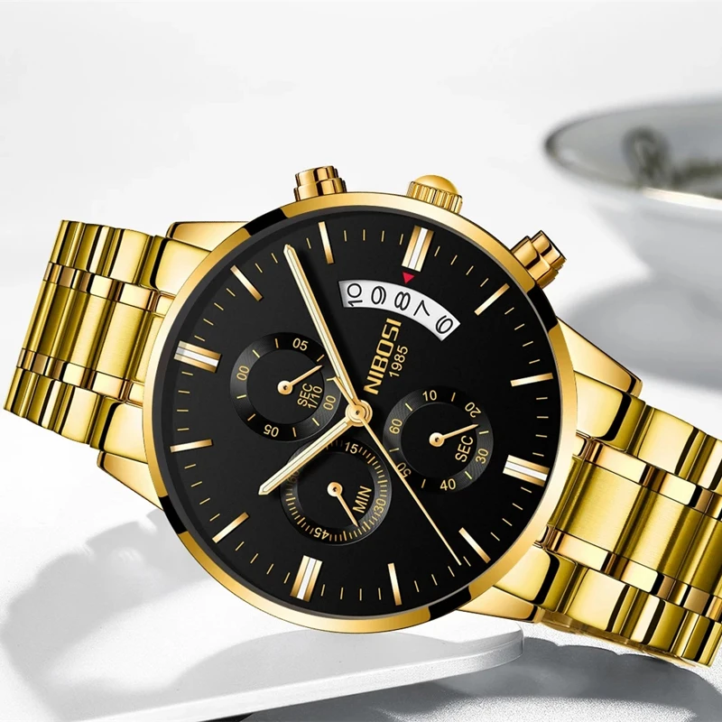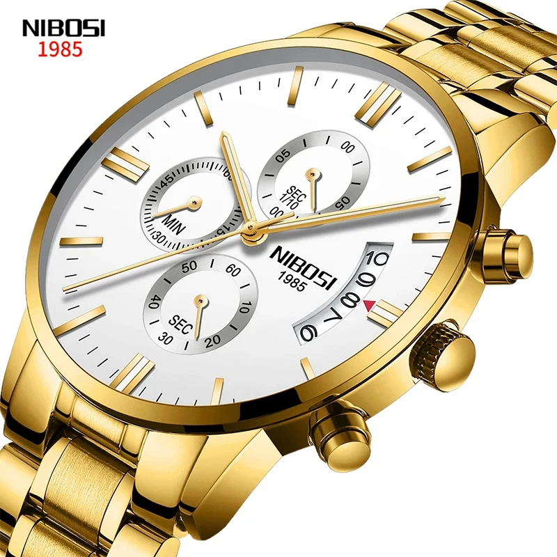 Часы наручные NIBOSI Мужские кварцевые золотистые, люксовые модные ...