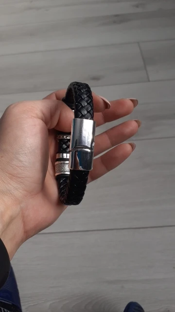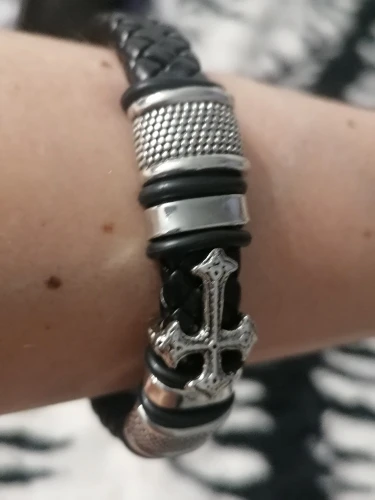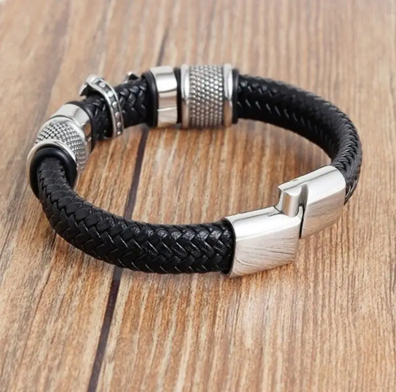 Мужской модный классический черный плетеный кожаный инкрустированный крест Магнитная металлическая пряжка деловой Повседневный подарок браслет