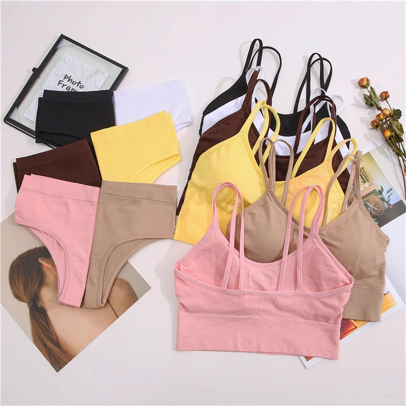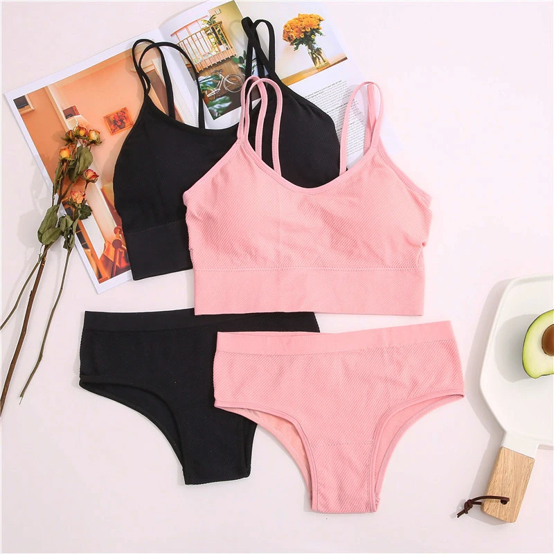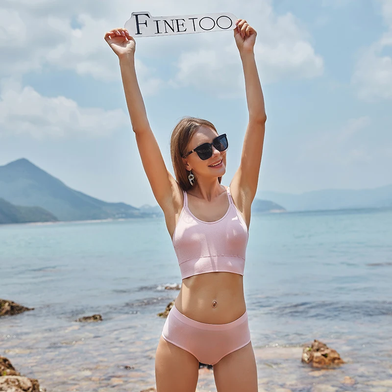 FINETOO бесшовный комплект с бюстгальтером, женский комплект нижнего белья с двойными плечевыми ремнями, мягкий топ с подкладкой из твила, трусы с низкой талией, женский комплект с бюстгальтером 2021
