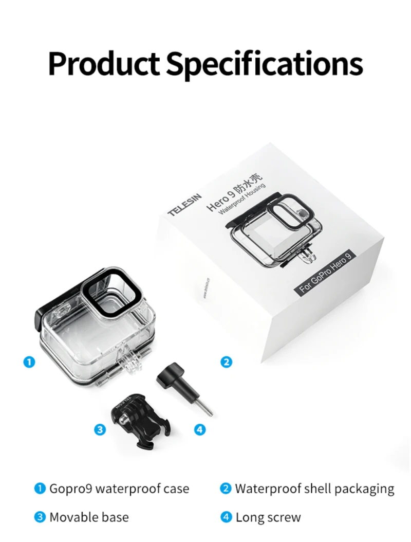 Новая и обновленная подводная камера TELESIN 60m gopro hero9 водонепроницаемая, Пыленепроницаемая и противоударная защитная оболочка.