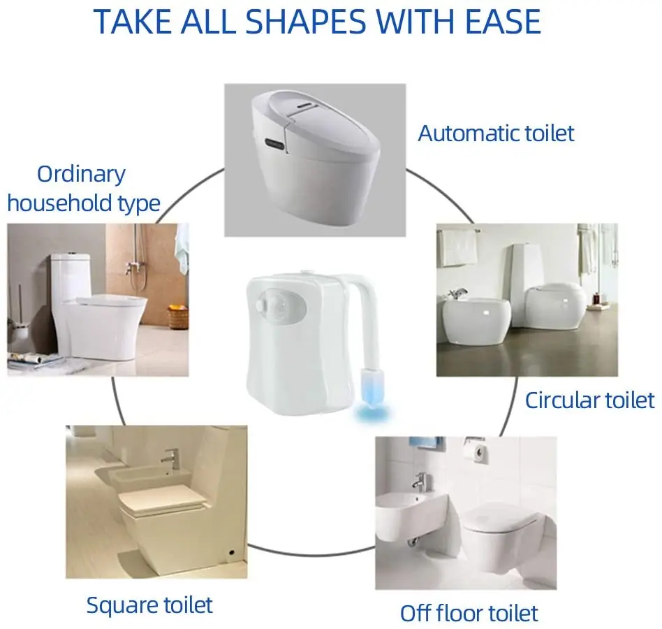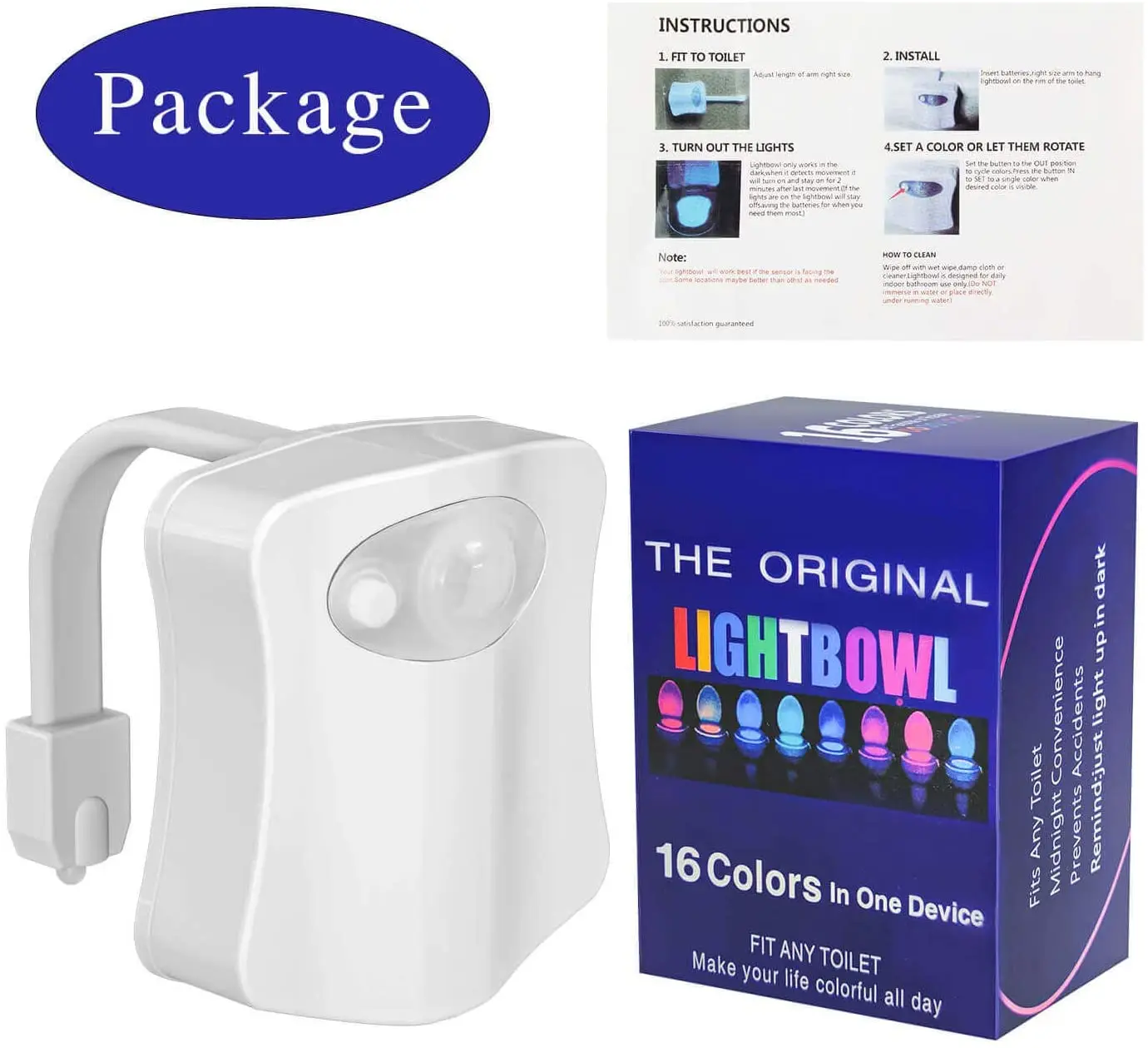 Easy легко установить --- с гибким крючком, очень легко установить в туалет, чашу сиденья, ванную комнату, шкаф, умывальник, ведро как детектор Ночной светильник. Также можно украсить на праздник, холлоуин, свадьбу, Рождество.