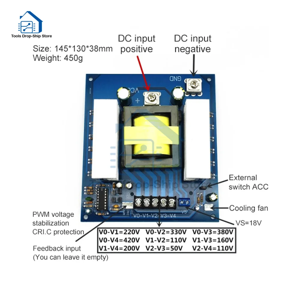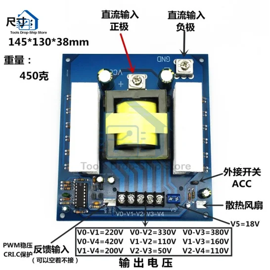 1. Эта плата представляет собой высокочастотный квадратный волновой выход переменного тока, поэтому общие индуктивные приборы не могут быть выполнены! (Например: электродвигатели, электрические вентиляторы, трансформаторы катушки и т. д. не могут быть использованы напрямую)