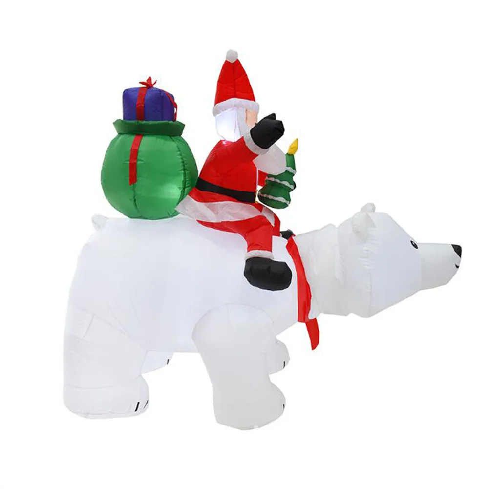 1,7 м Рождественская надувная кукла с вибрирующей головой, гигантский Санта-Клаус для езды на Полярном медведе, воздушная форма, наружный двор, украшения для дома, надувная игрушка