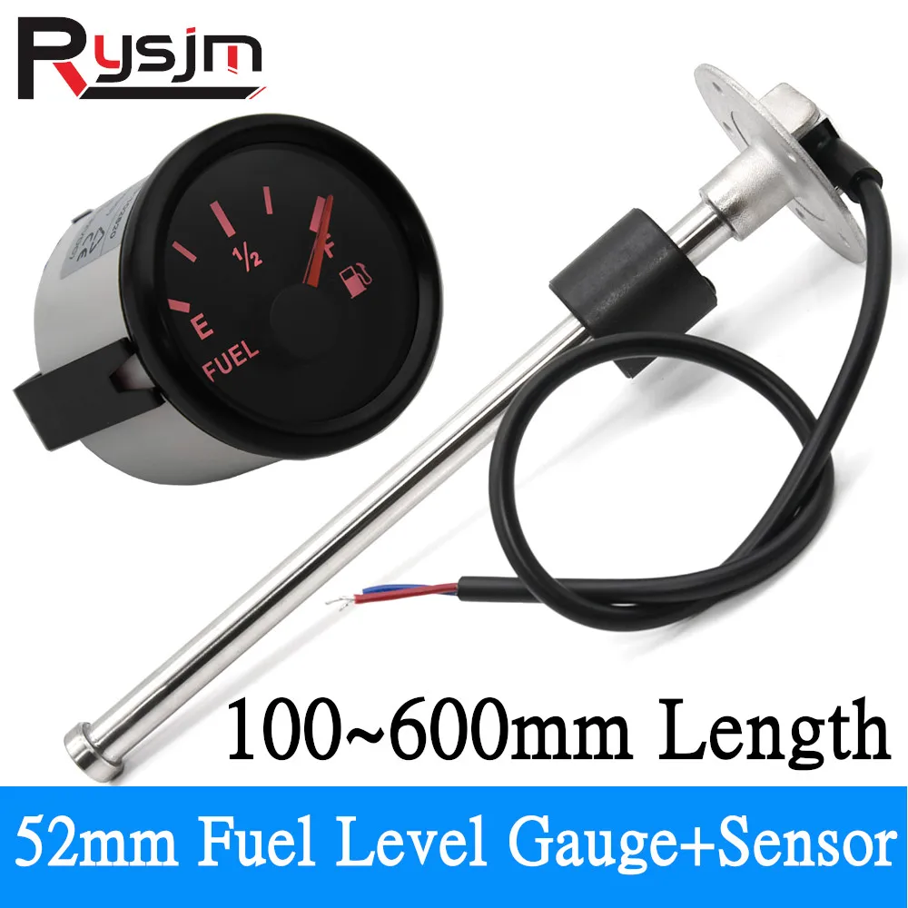 Датчик уровня морского топлива, 100-600 мм, подходит для 52 мм, измеритель уровня воды и топлива в лодке и автомобиле, 0-ом, красная подсветка, 9-32 В, Индивидуальный размер