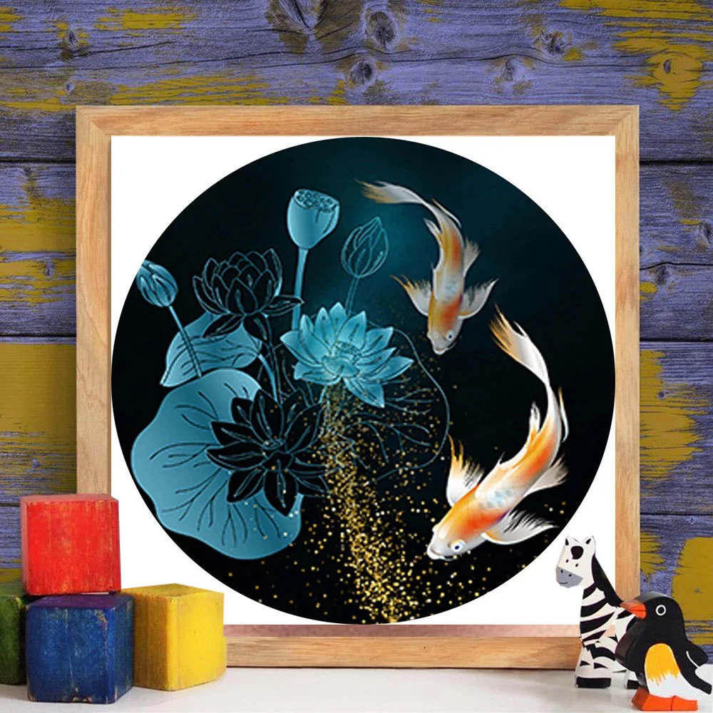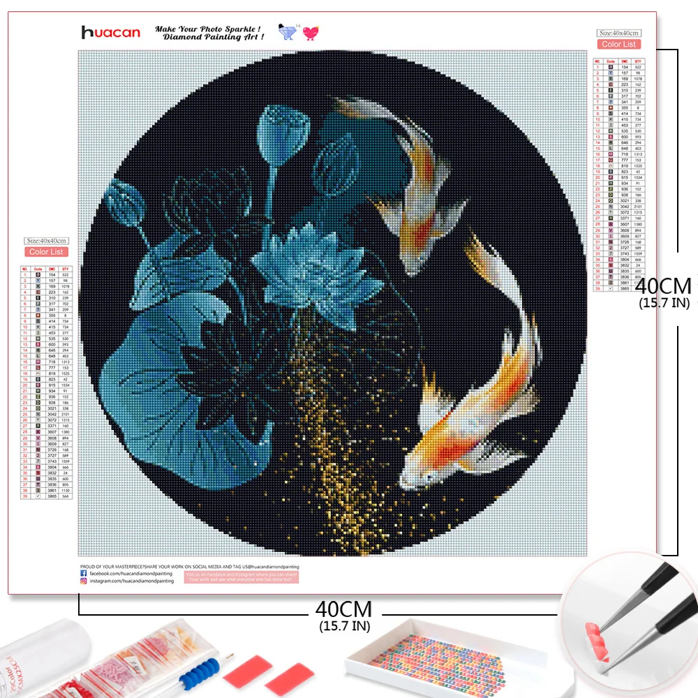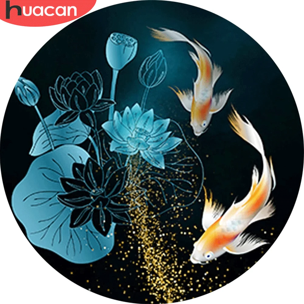 Алмазная 5D картина HUACAN, мозаика с лотосом, цветком, рыбками, животными, полная вышивка, украшение для дома