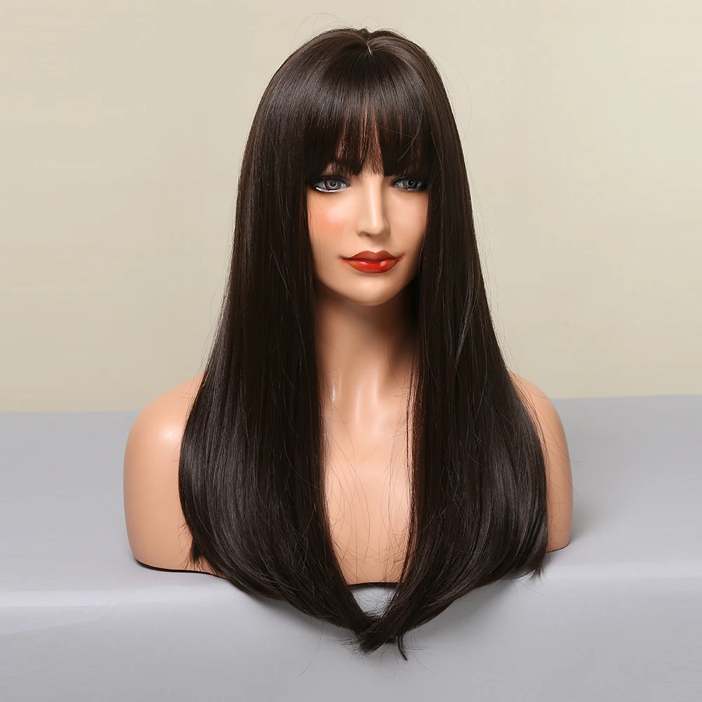Парики женские черныекоричневые прямые синтетические, с челкой, термостойкие