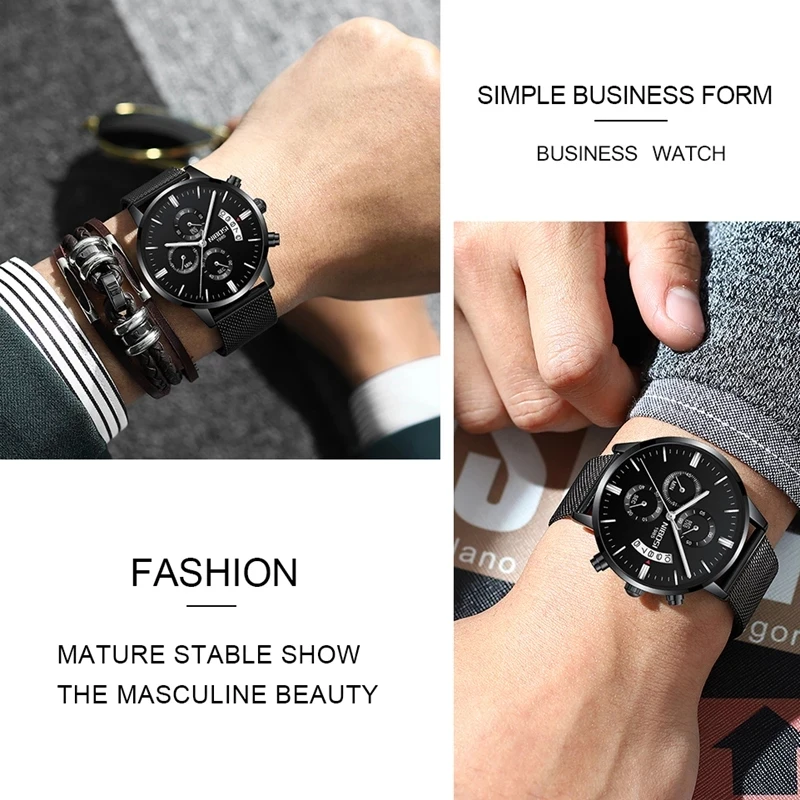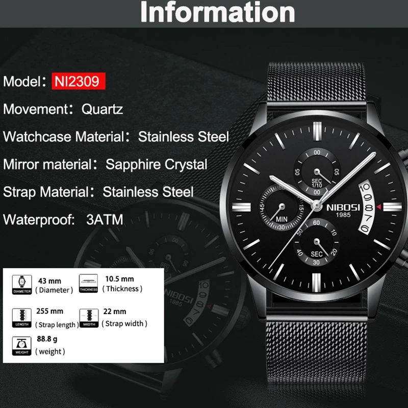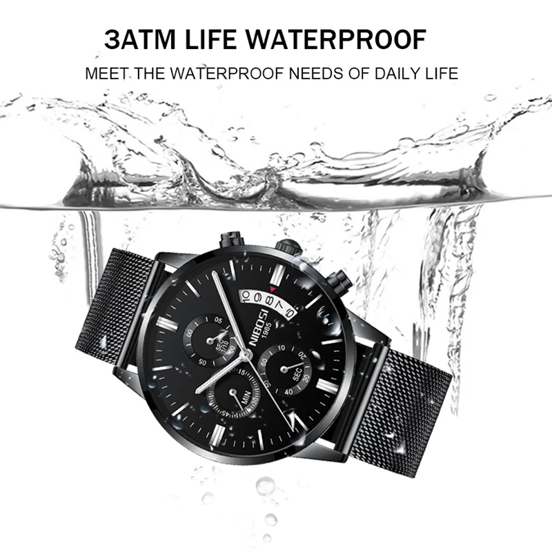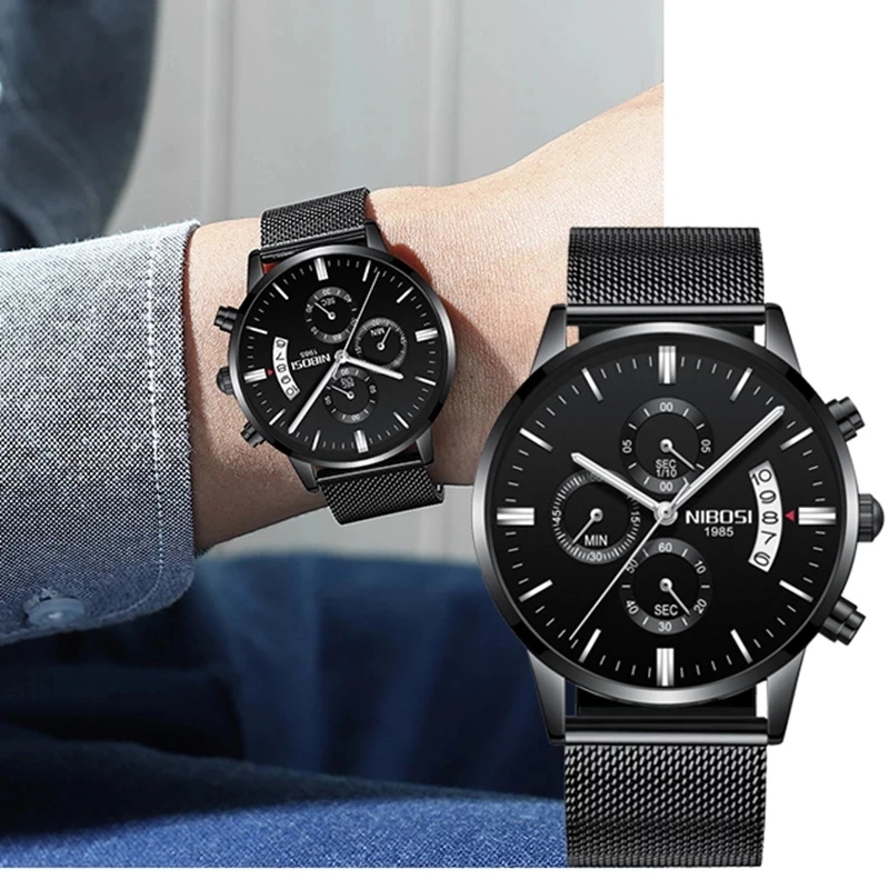 Часы наручные NIBOSI Мужские кварцевые, роскошные модные брендовые водонепроницаемые с хронографом и датой, 2309