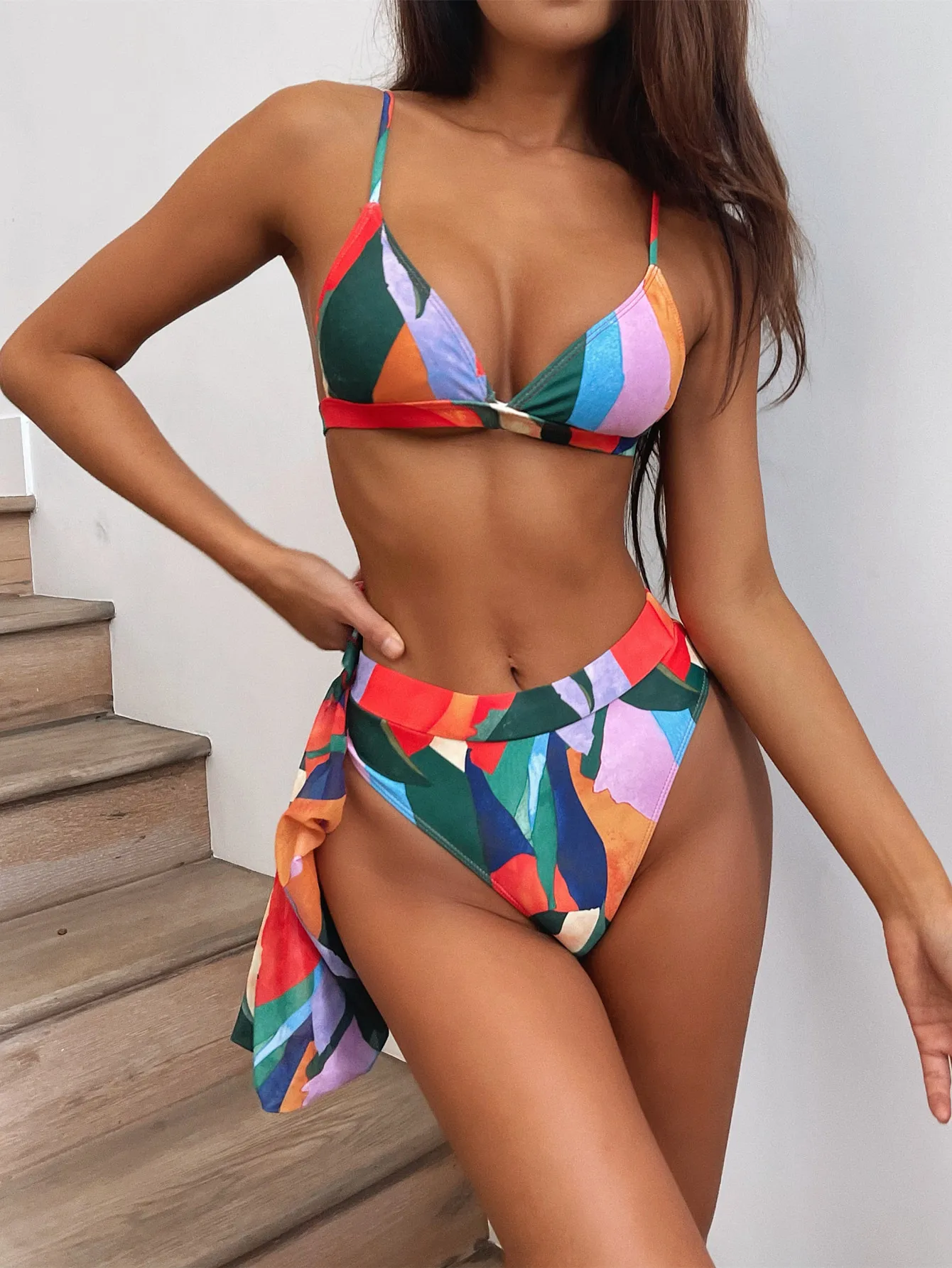 Сексуальные купальники из 3 предметов, бикини с принтом, микро бики...