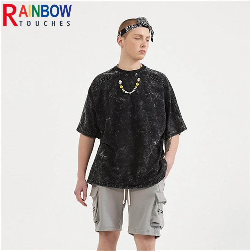 Футболка Rainbowtouches с кислотной стиркой для мужчин, летняя модн...