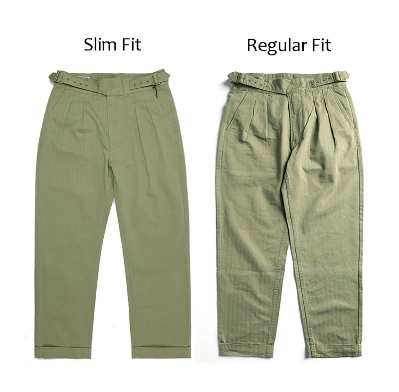 9,5 ткань высокой плотности 9,5 унций, стирается, чтобы придать ей винтажный вид⦁ Эти брюки для гуркхи имеют слегка зауженный силуэт, который удобно сидит на талии с драпировкой, подходящей через сиденье и бедра⦁ Передние складки, четыре кармана, пряжки на талии, застежка на молнии, отложной низ⦁ Доступны два разных размера, пожалуйста, проверьте наши Таблицы размеров ниже