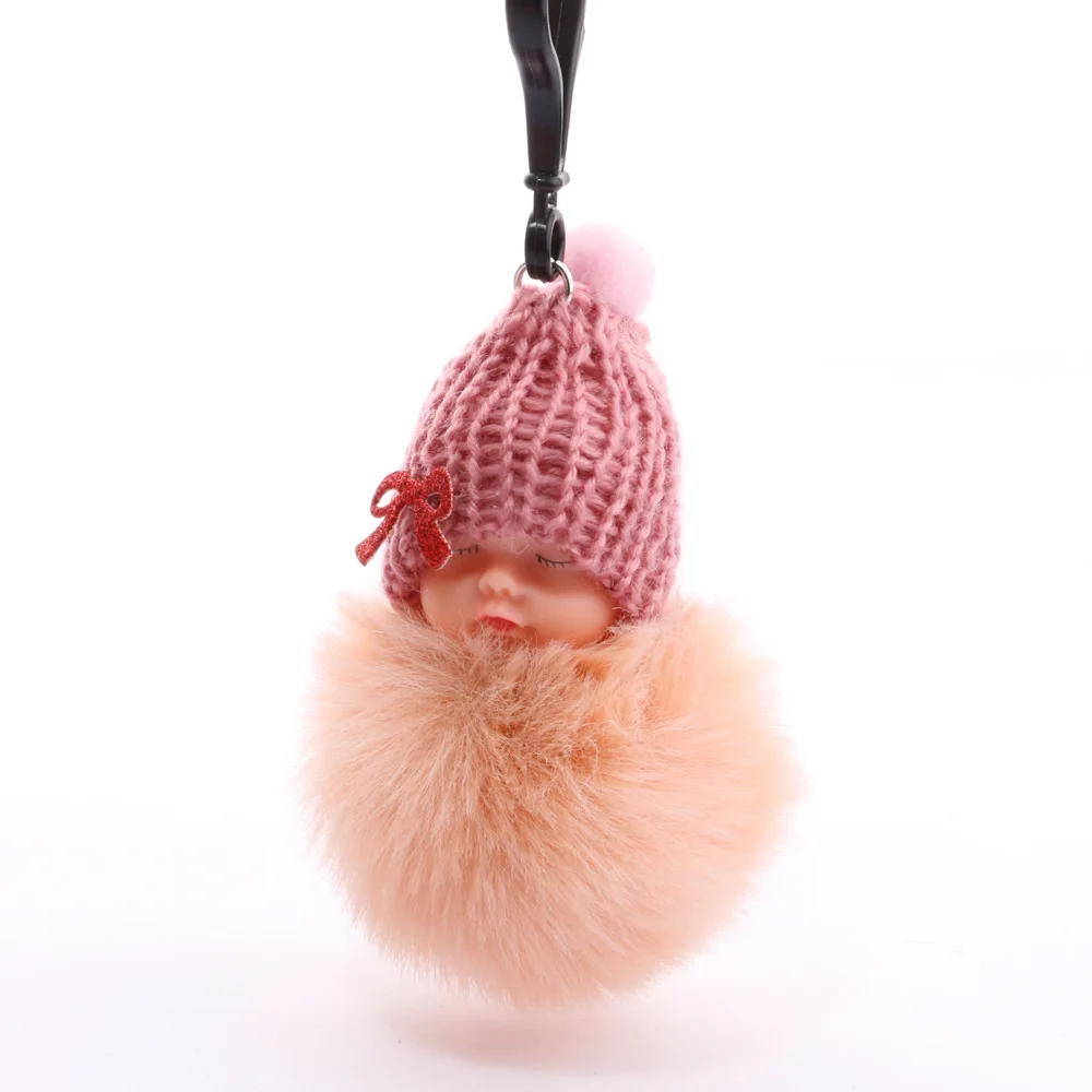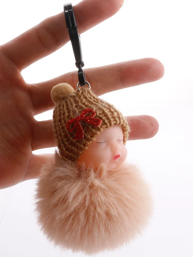 Брелок для ключей в виде спящей куклы, цветочный помпон, помпон из ...