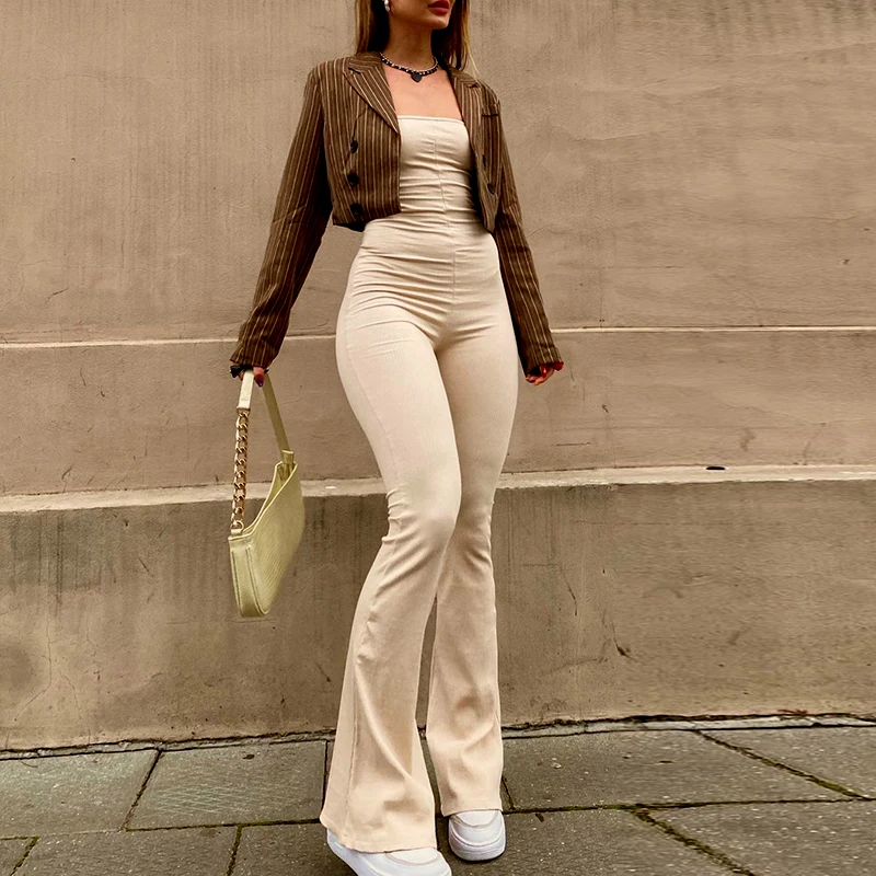 Женский Облегающий комбинезон без бретелек, с открытой спиной