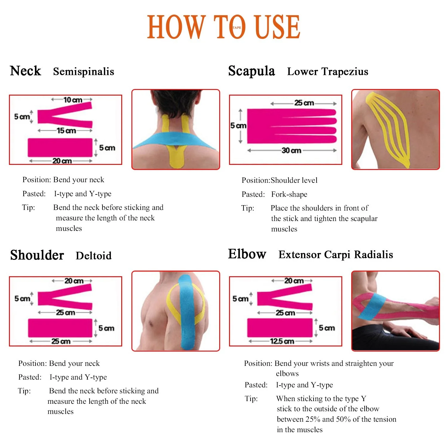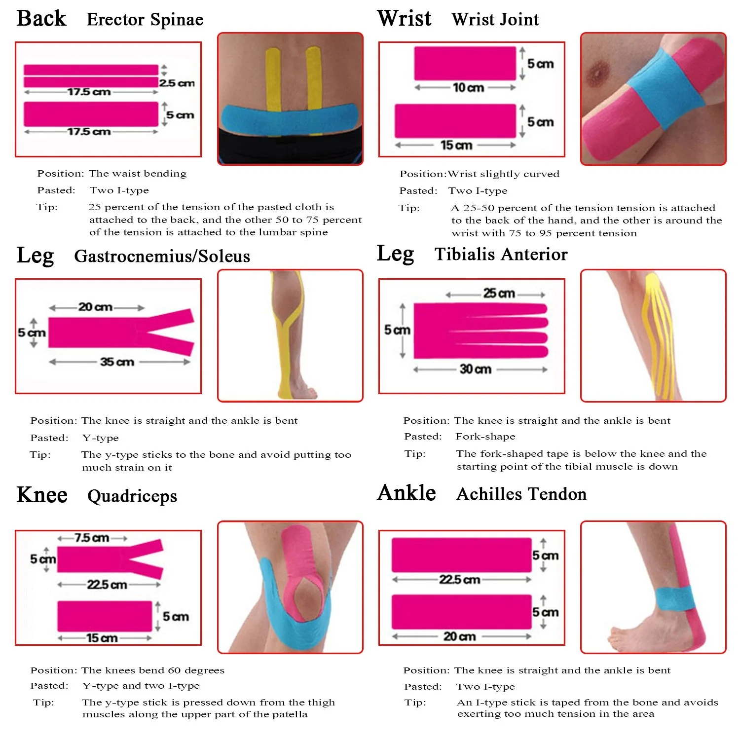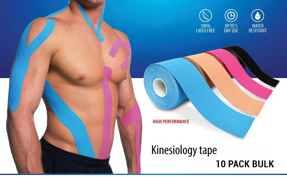 Кинезиологическая лента, 10 шт. в упаковке, 5 м, спортивные ленты, рулоны, защита колена и локтя, водонепроницаемая, искусственная кожа, ширина 2,5571015 см
