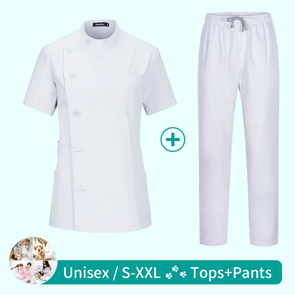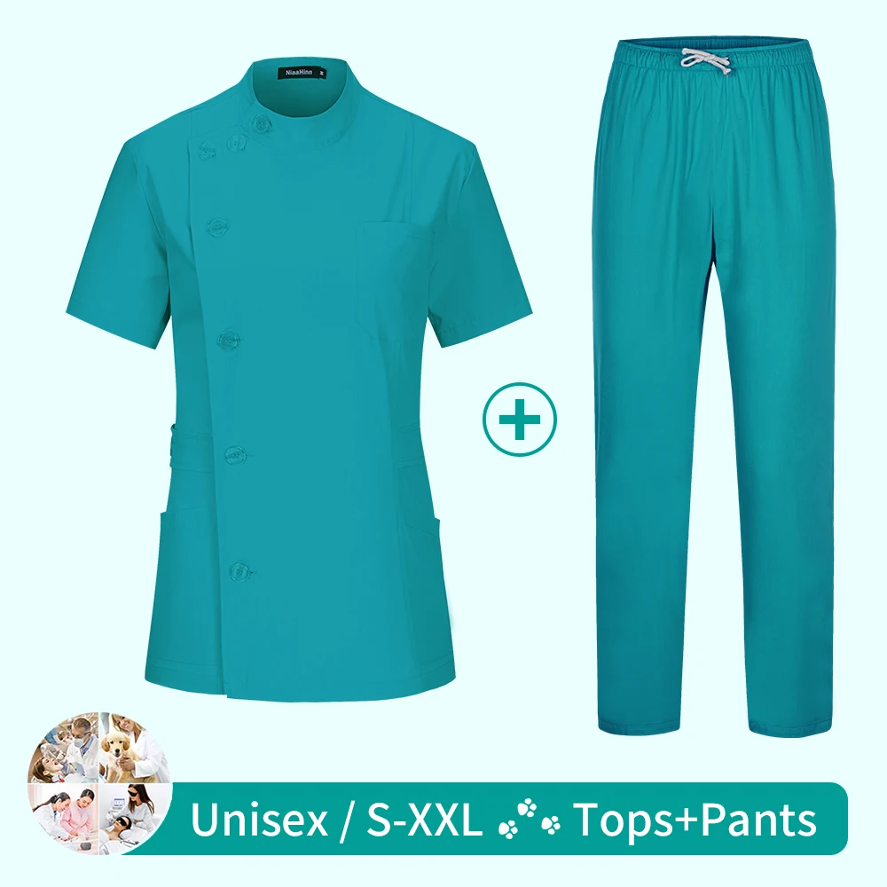 Медицинская медсестра рабочая одежда больничные хирургические костюмы Скраб Униформа для медсестер салон красоты женский короткий рукав пальто + брюки оптовая продажа