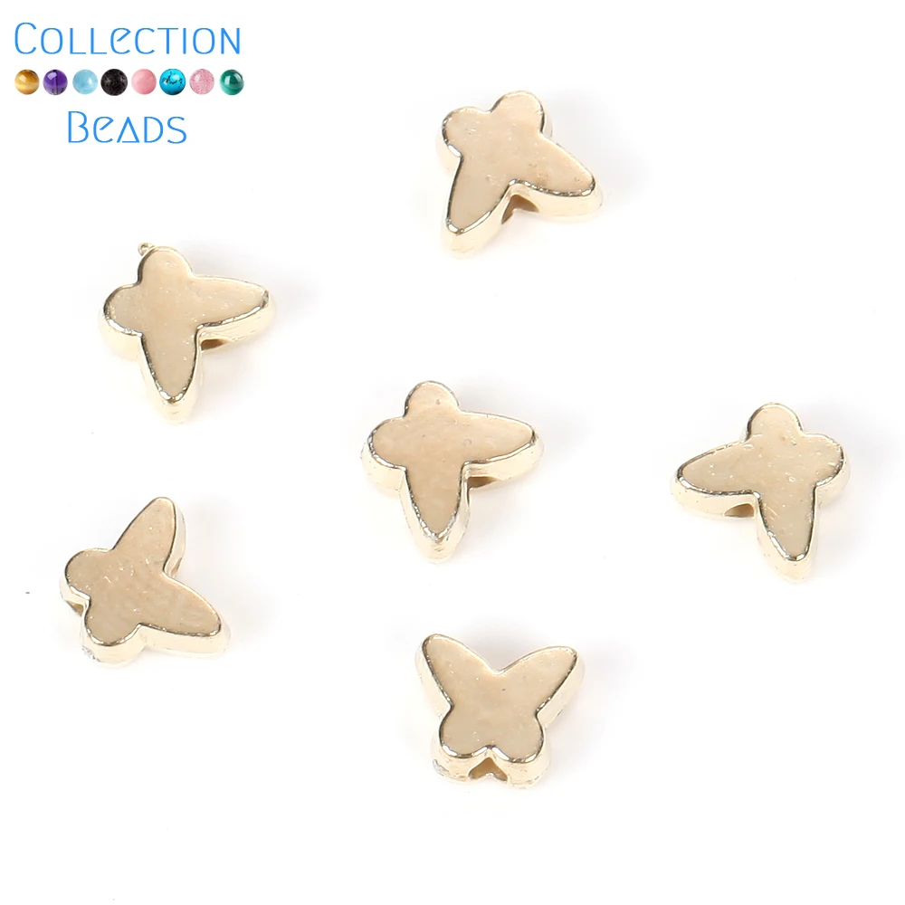 Бусины из натурального камня с золотым покрытием, двойное отверстие...