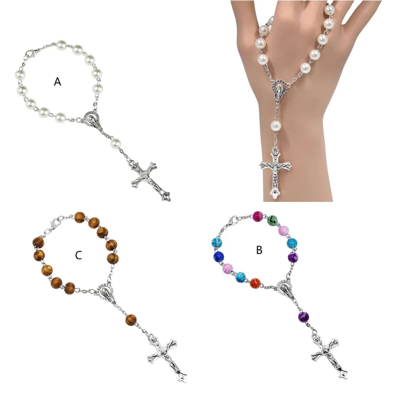 Браслеты с крестом из католических религиозных бусин, центральный э...