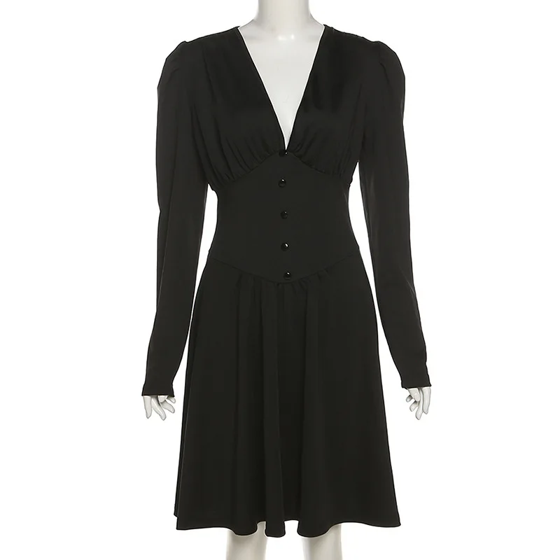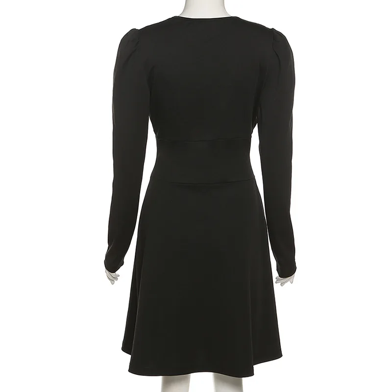 Платье-мини ТРАПЕЦИЕВИДНОЕ с V-образным вырезом и длинным рукавом