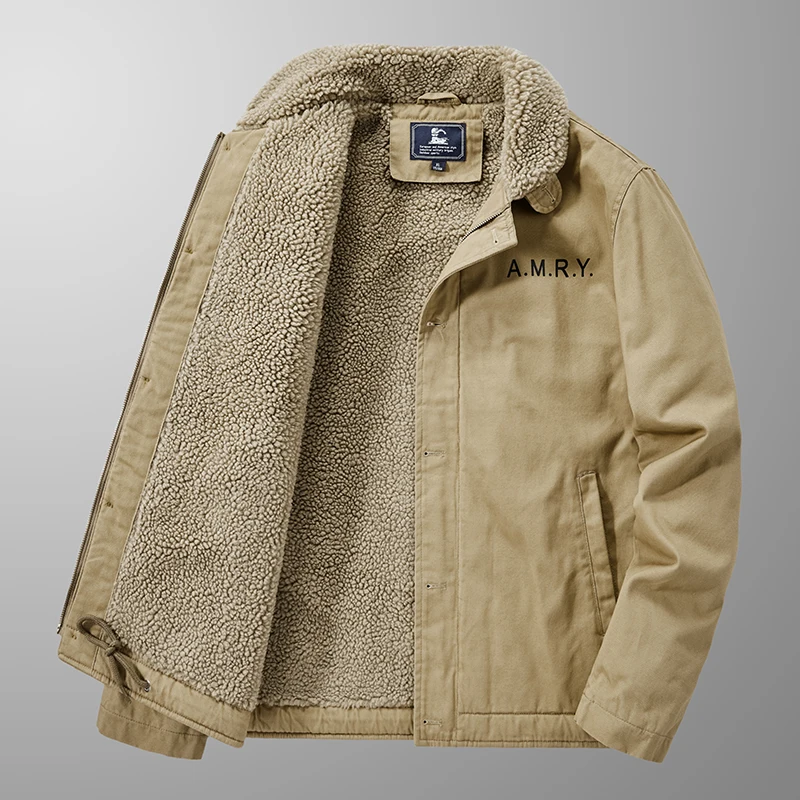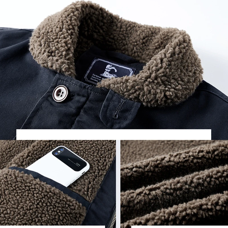 Мужская зимняя куртка из овечьей шерсти, теплая Повседневная куртка...