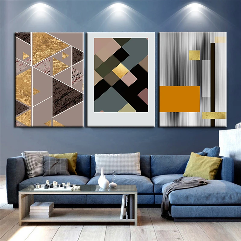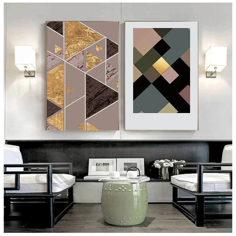 Абстрактный постер из золотой фольги высокой четкости с геометрическим рисунком, Роскошные Настенные картины, Модная Современная Картина на холсте, декор для гостиной и дома