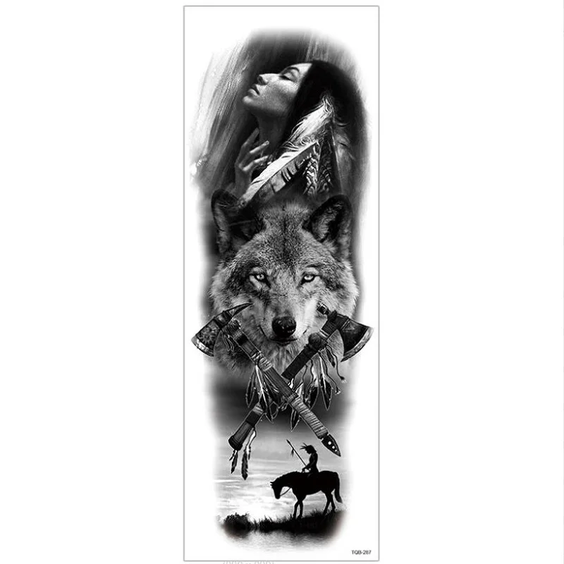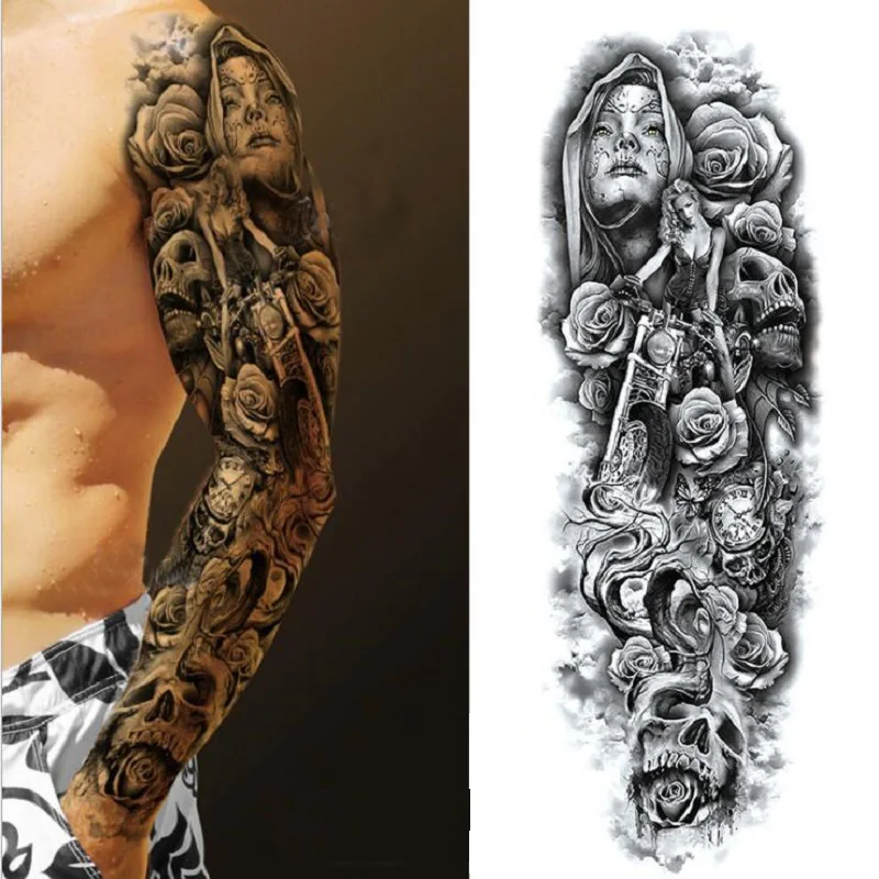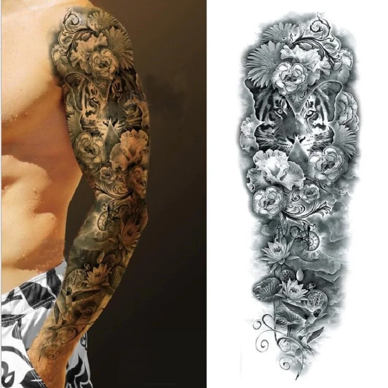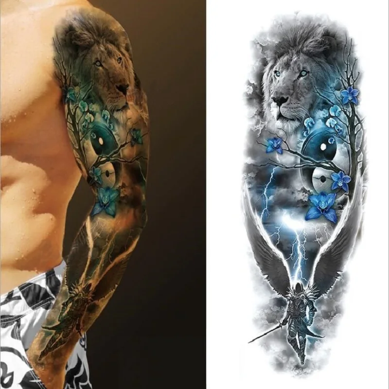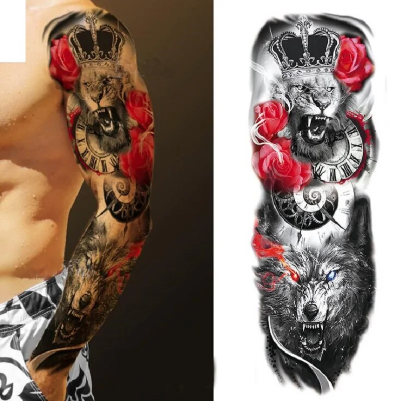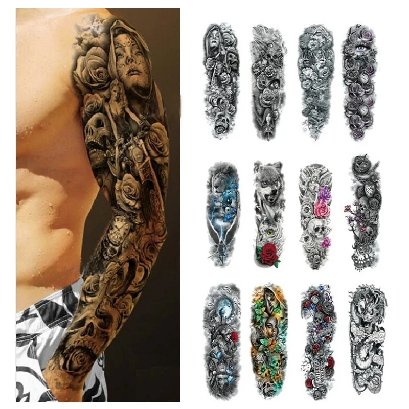 Большой полный рука Временные татуировки стикер Водонепроницаемый модный Тотем Череп Лев рукав Поддельные рукава Посейдон