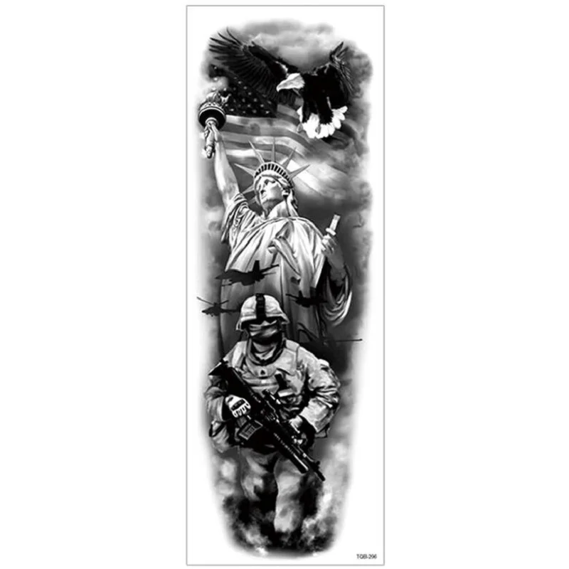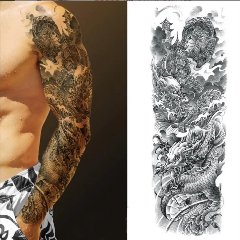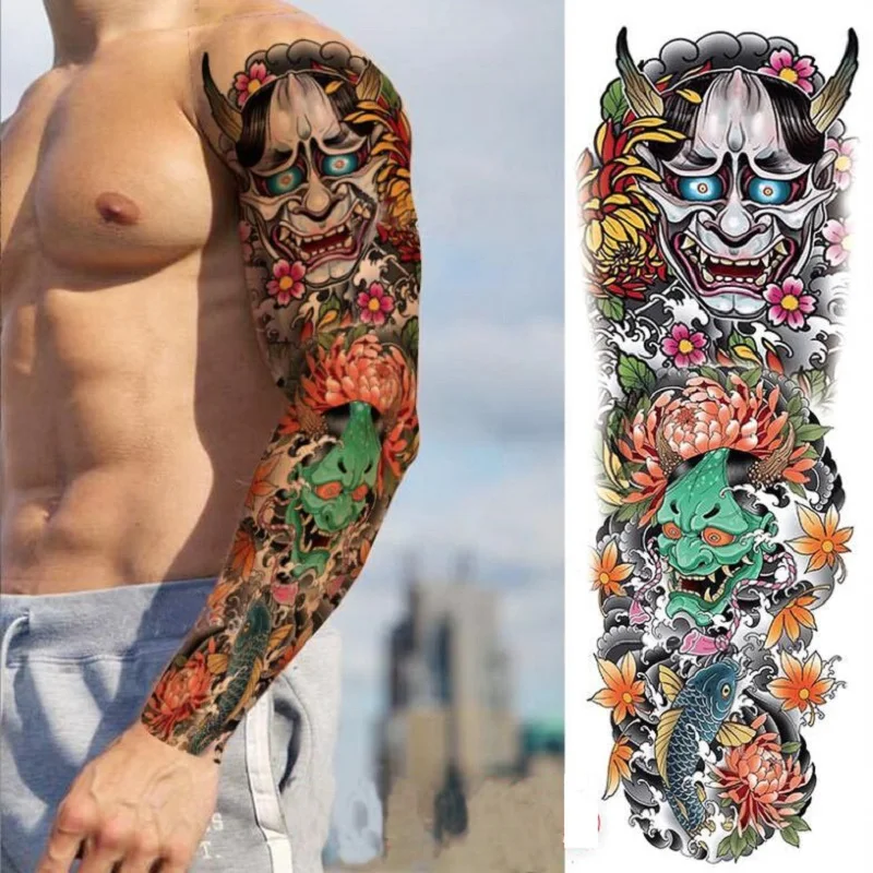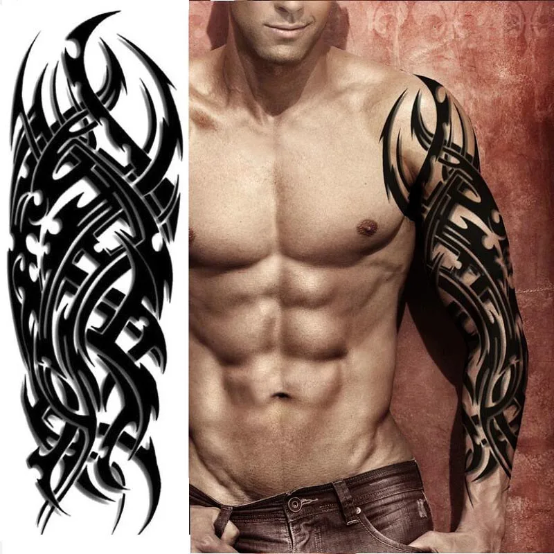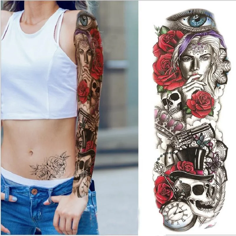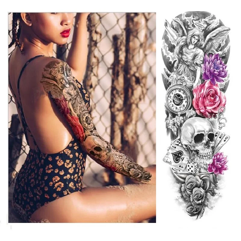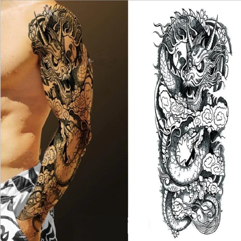 Большой полный рука Временные татуировки стикер Водонепроницаемый модный Тотем Череп Лев рукав Поддельные рукава Посейдон