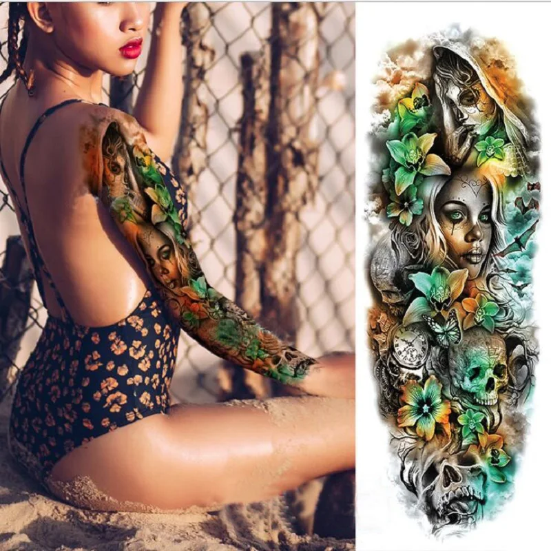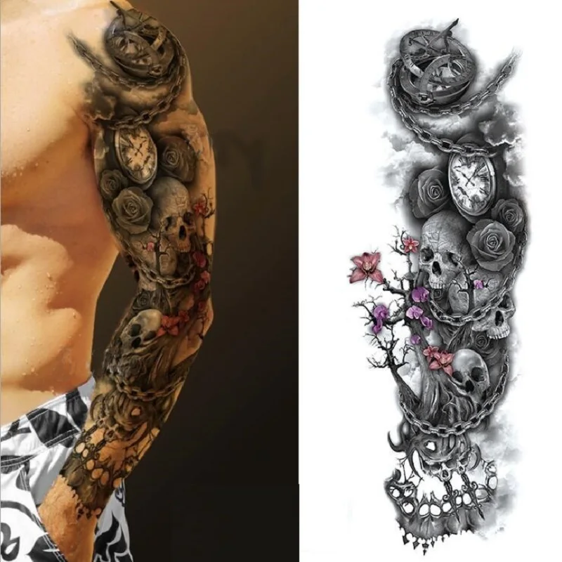 Большая рука водостойкая Временная тату-наклейка рукав тату Череп а...