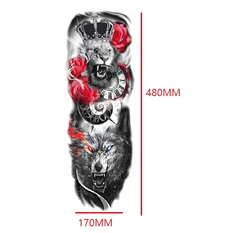 Новинка 2022, водостойкая Временная большая наклейка с имитацией рукава и татуировкой на всю руку, тотем, Череп, Лев, плечи, тату для мужчин и женщин, боди-арт