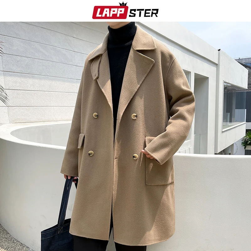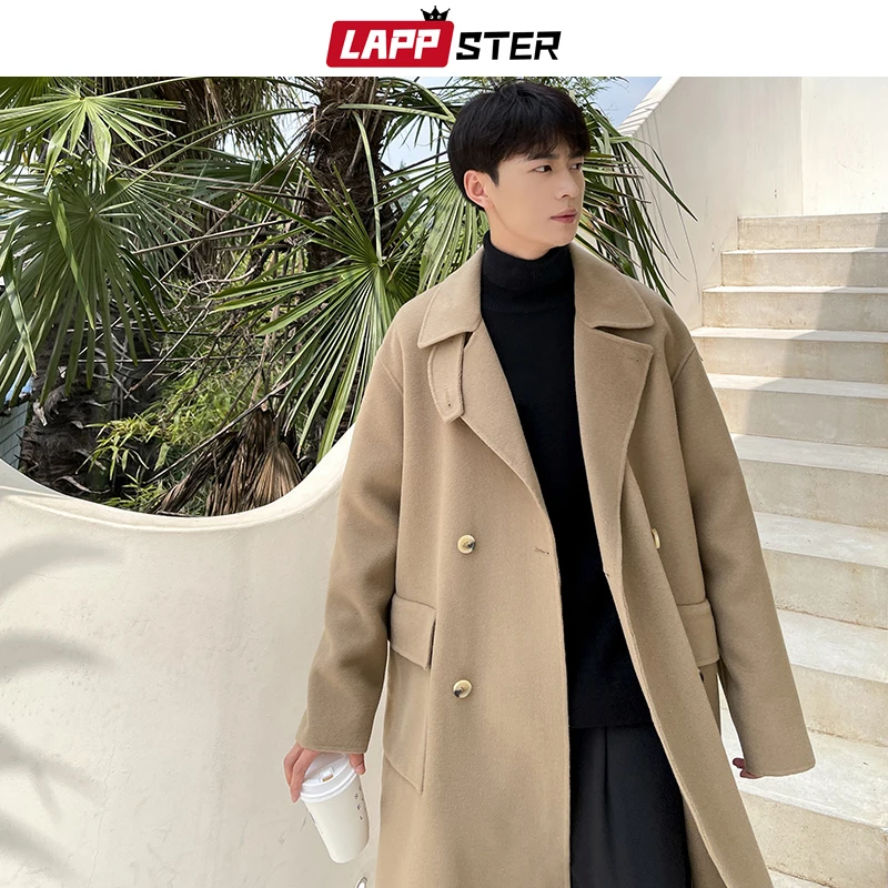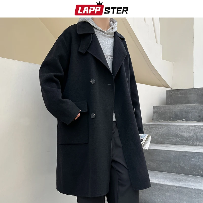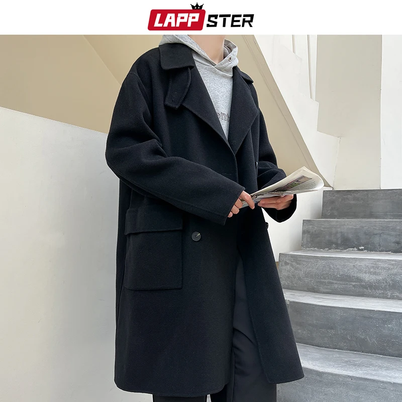 Тренчкот LAPPSTER мужской длинный, винтажный шерстяной плащ в стиле харадзюку, уличная одежда, корейская мода, осень-зима 2022