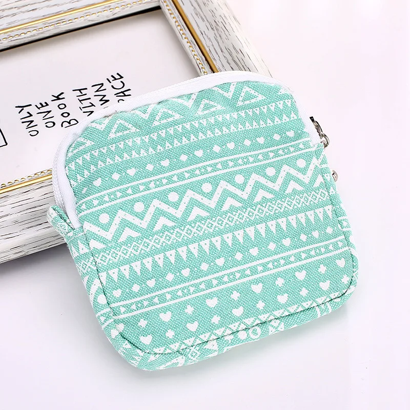 1 шт., милый женский кошелек для монет, хлопок, лен, синий, зеленый, гигиеническая салфетка, Портативная сумка для хранения, для путешествий, для улицы, милый кошелек, держатель для монет
