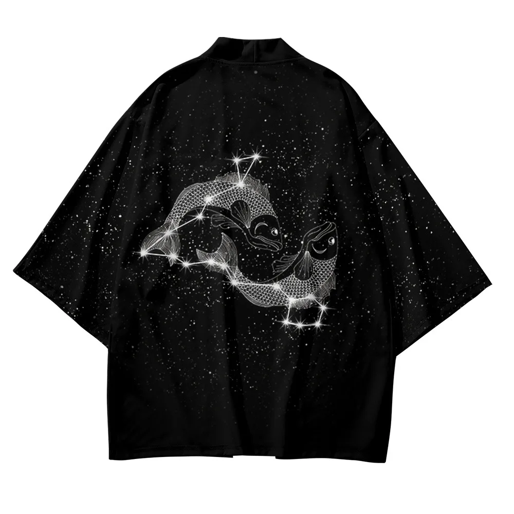 Мужская свободная Тонкая Повседневная куртка с рисунком в виде звезд созвездий, кардиган-кимоно в азиатском стиле