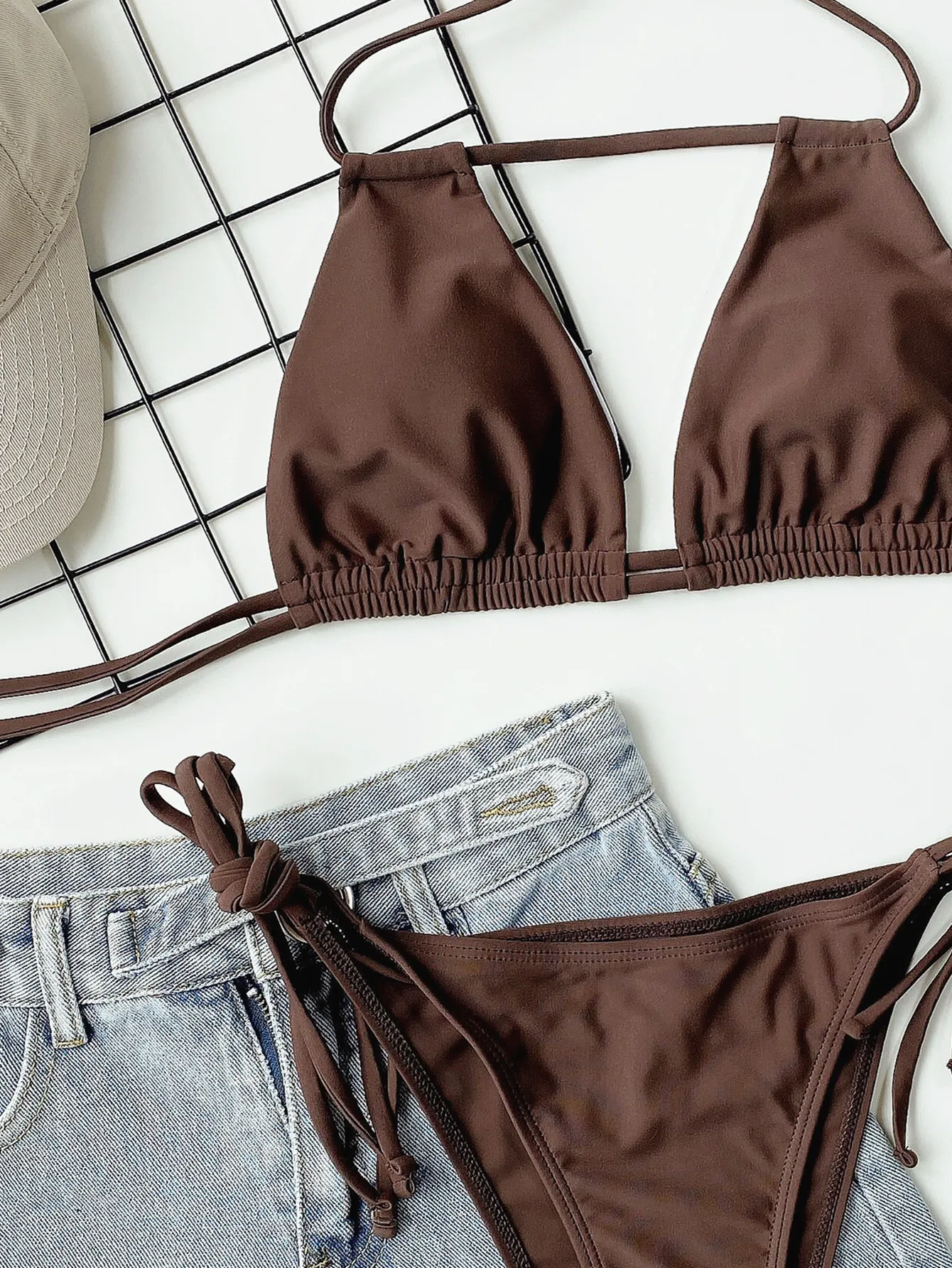 Мини стринги однотонное сексуальное бикини 2021 женский купальник м...