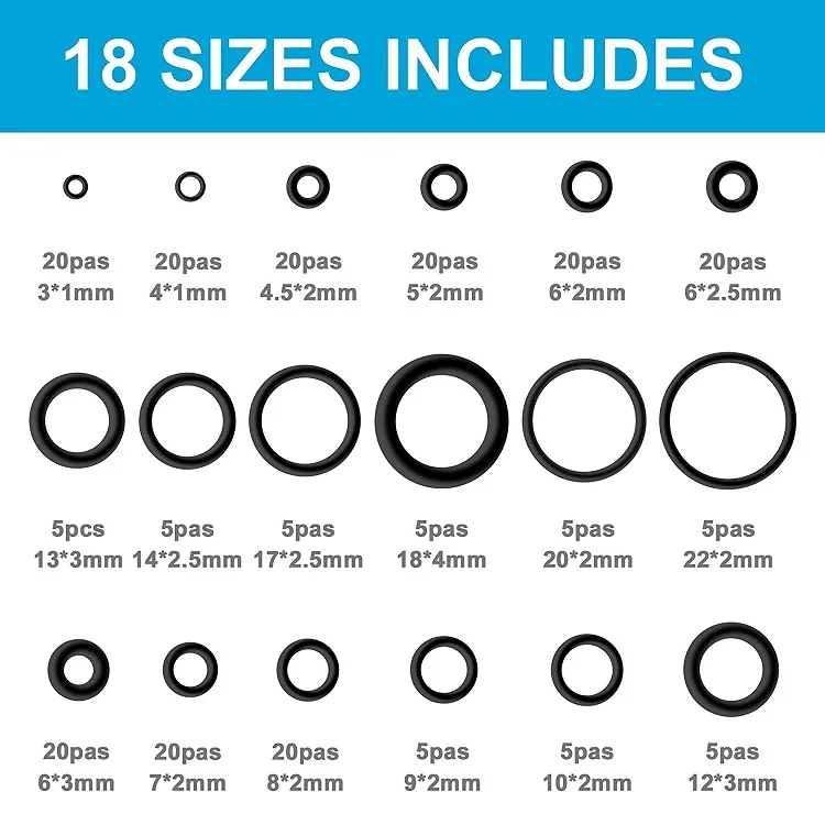 Всего 225 шт уплотнительных колец с портативной пластиковой коробкой, включая:20 шт #3*1 O кольца20 шт #4*1 O кольца20 шт #4,5*2 O кольца20 шт #5*2 O кольца20 шт #6*2 O кольца20 шт #6*2,5 O кольца20 шт #6*3 O кольца20 шт #7*2 O кольца20 шт #8*2 O кольца5 шт #9*2 O кольца5 шт #10*2 O кольца5 шт #12*3 O кольца5 шт #13*3 O кольца5 шт #14*2,5 O кольца5 шт #17*2,5 O кольца5 шт #18*4 O кольца5 шт #20*2 O кольца5 шт #22*2 O кольца