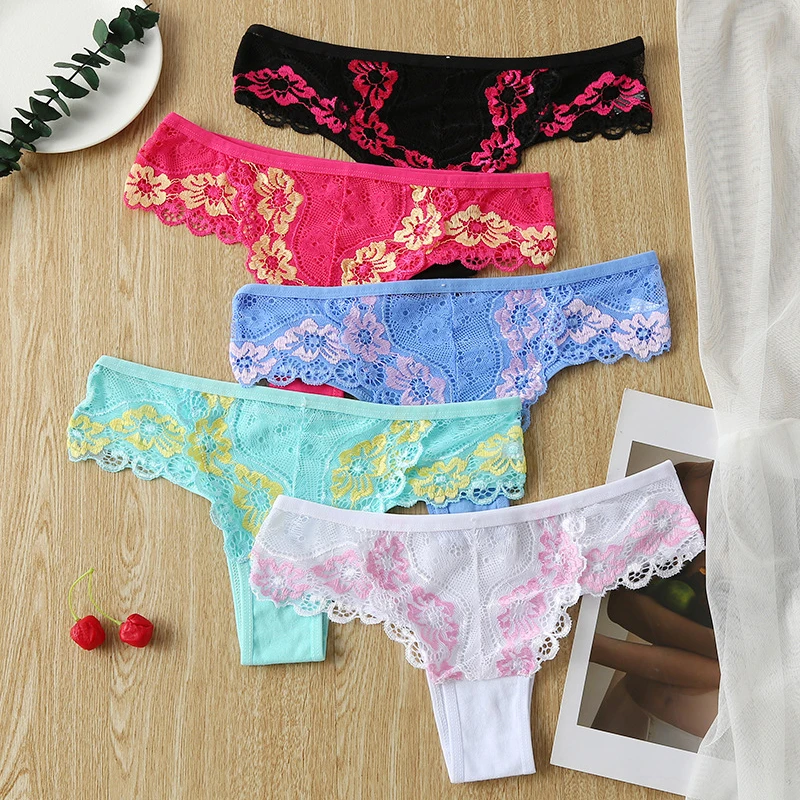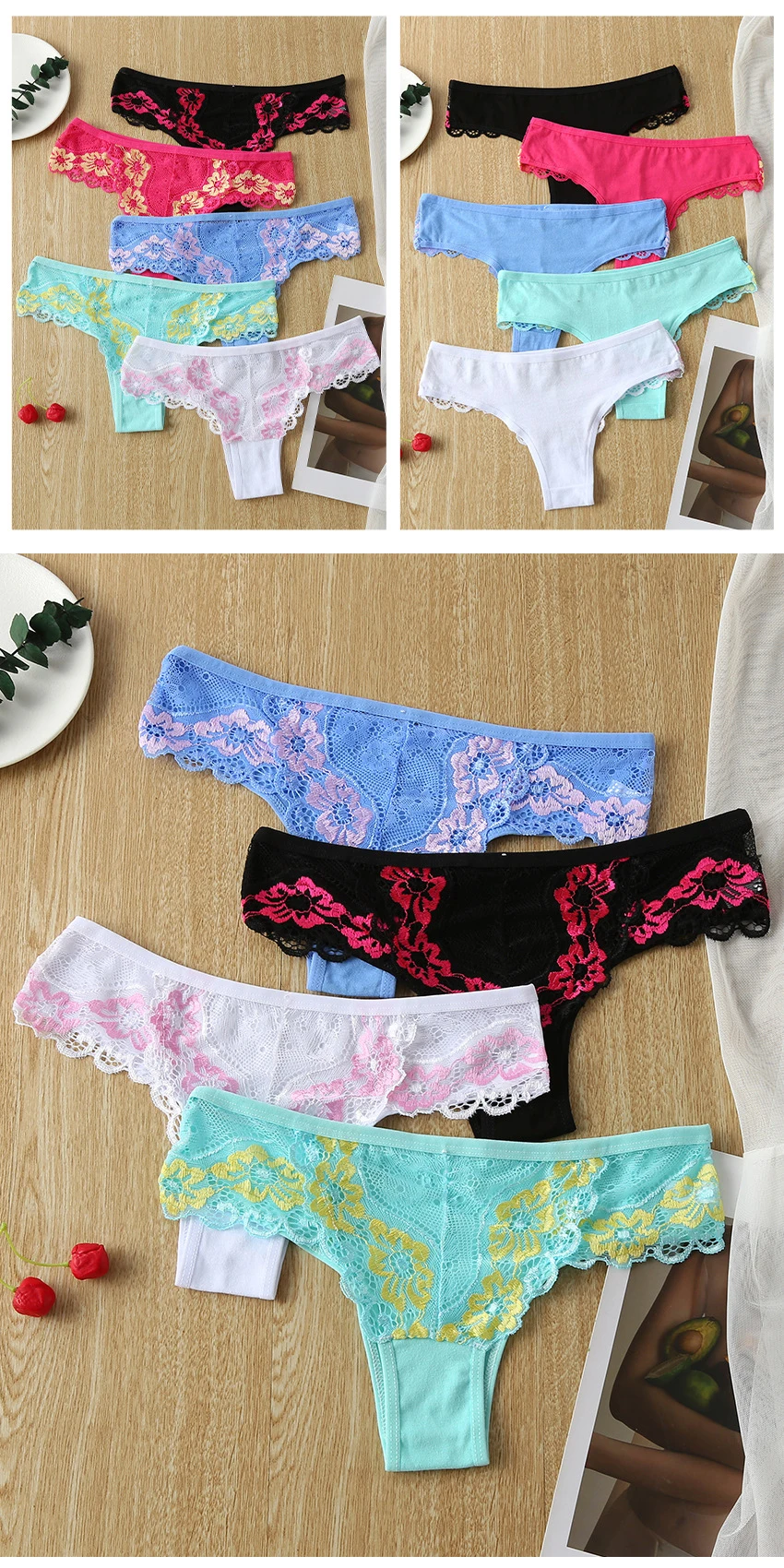 Трусики-стринги BANNIROU 3 шт., хлопковое кружевное нижнее белье для женщин, пикантные Т-образные Трусы-стринги