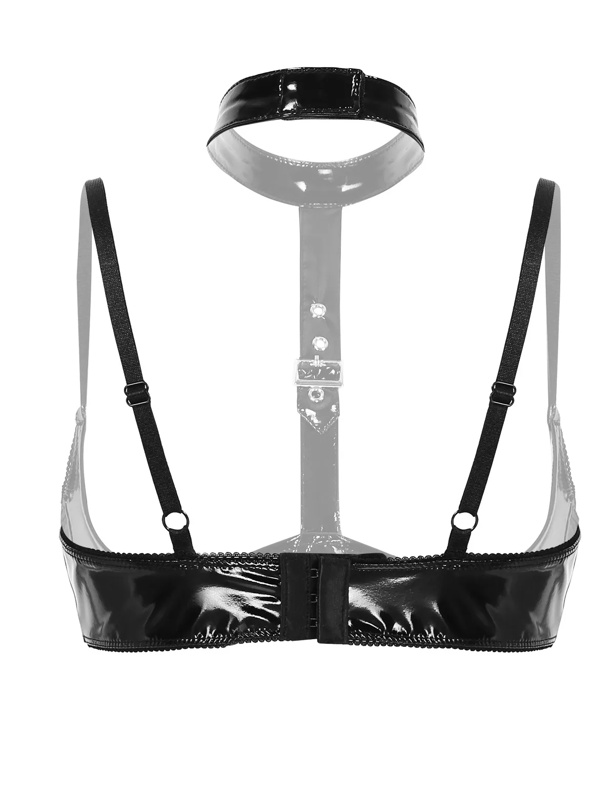 Женский комплект из 2 предметов; Женское белье из лакированной кожи; Открытые чашечки; Бюстгальтер с открытой промежностью; Трусы с высоким вырезом; Нижнее белье; Трусики; # S-XL