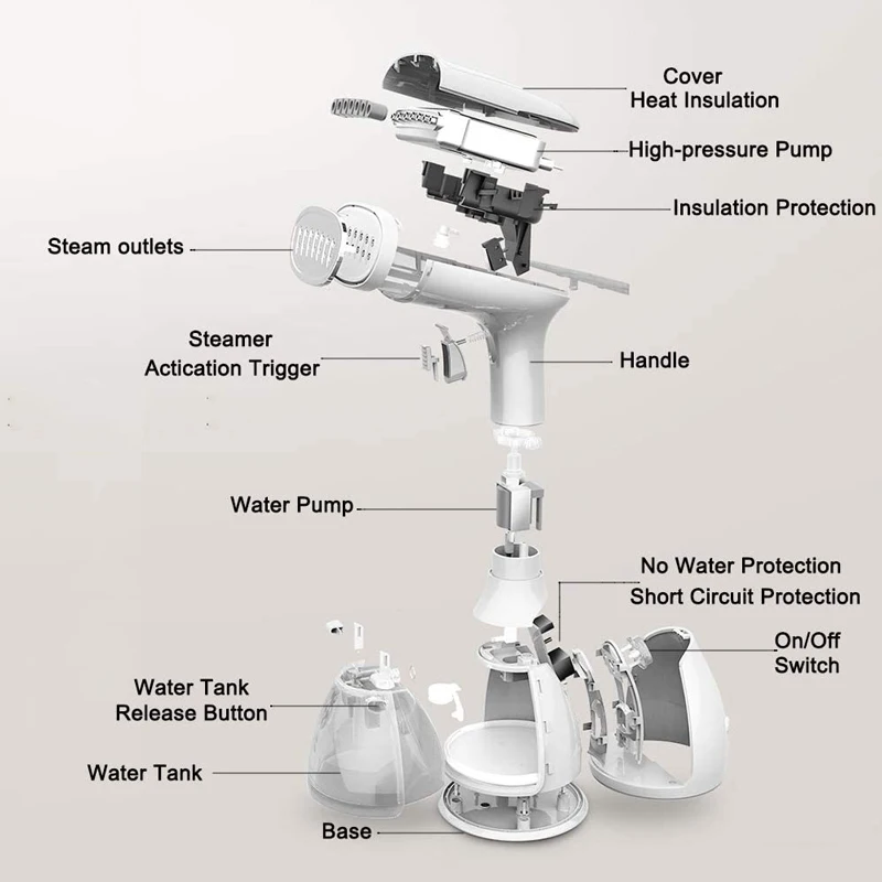 1. Возьмите резервуар для воды и заполните его водой, не превышайте максимальный уровень воды;2. Подключите источник питания, нажмите кнопку питания, мигает индикатор-светильник;3. После того, как светильник индикатора прекратит мигать, включите паровой выключатель, и вы можете продолжать распылять для глажки.