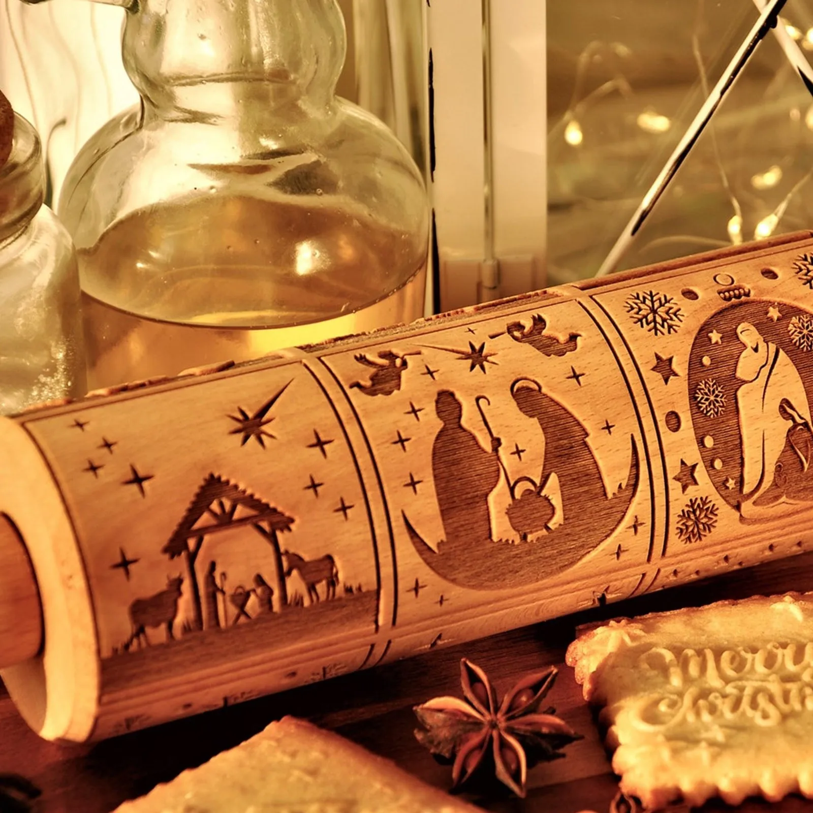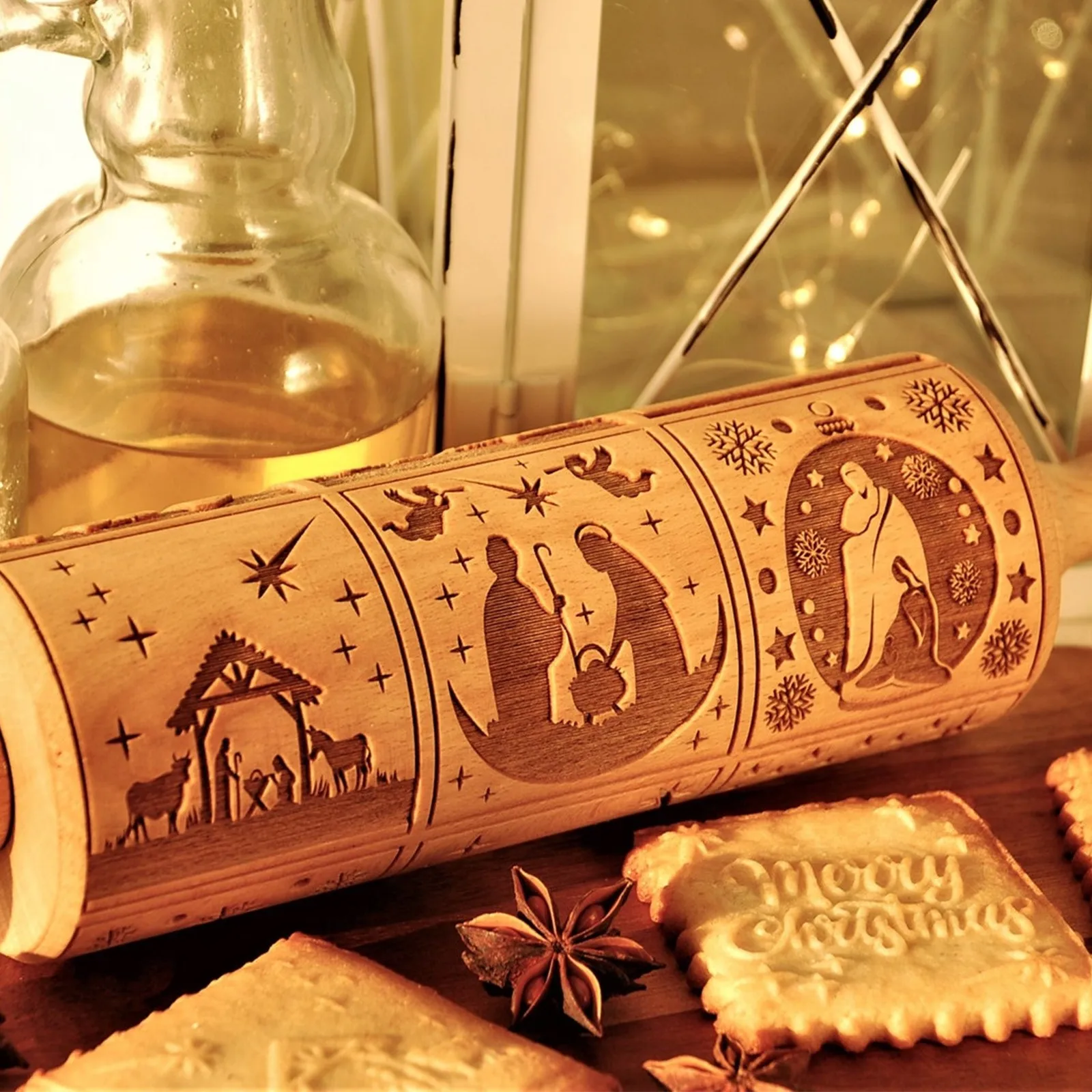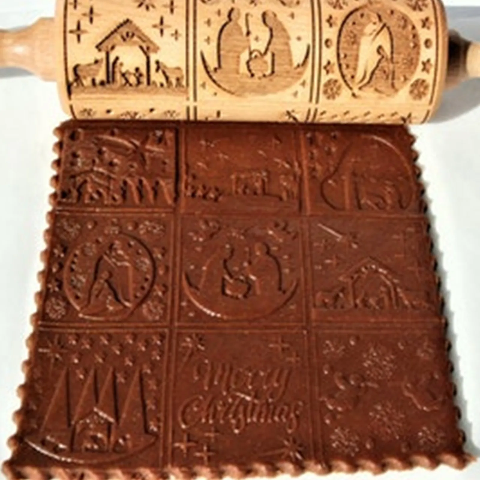 Скалка с гравировкой на тему Рождества, рельефный ролик для теста, резак для печенья, кухонные кондитерские изделия, рождественские подарки, резная форма для печенья