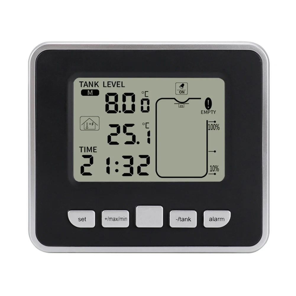 Ultrasonic Water Tank Level Meter Sensor w/Temperature Display Time Alarm Transmitter Receiver Liquid Depth Measuring Tools